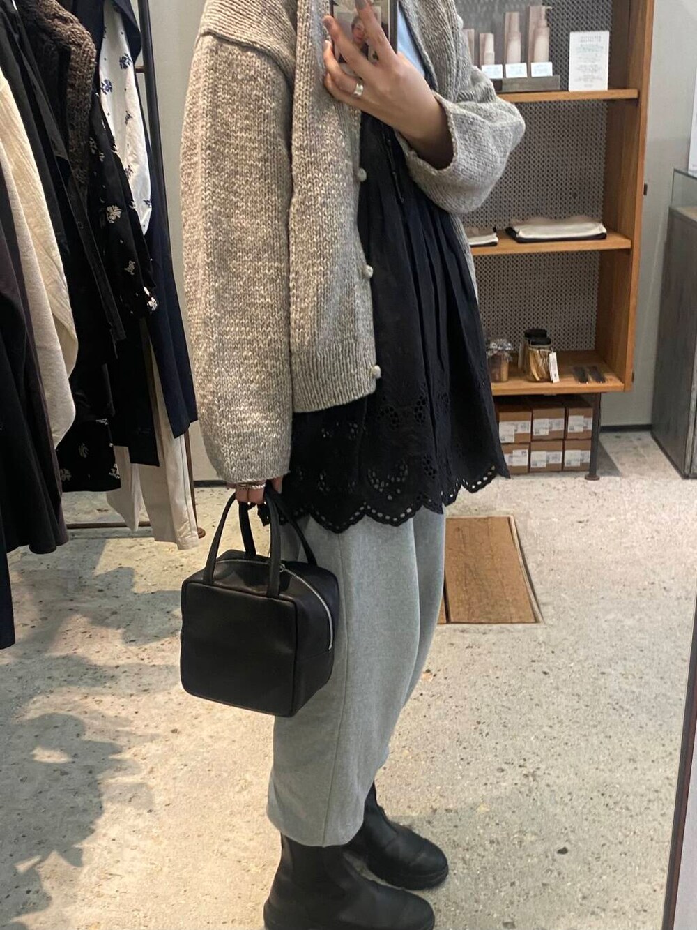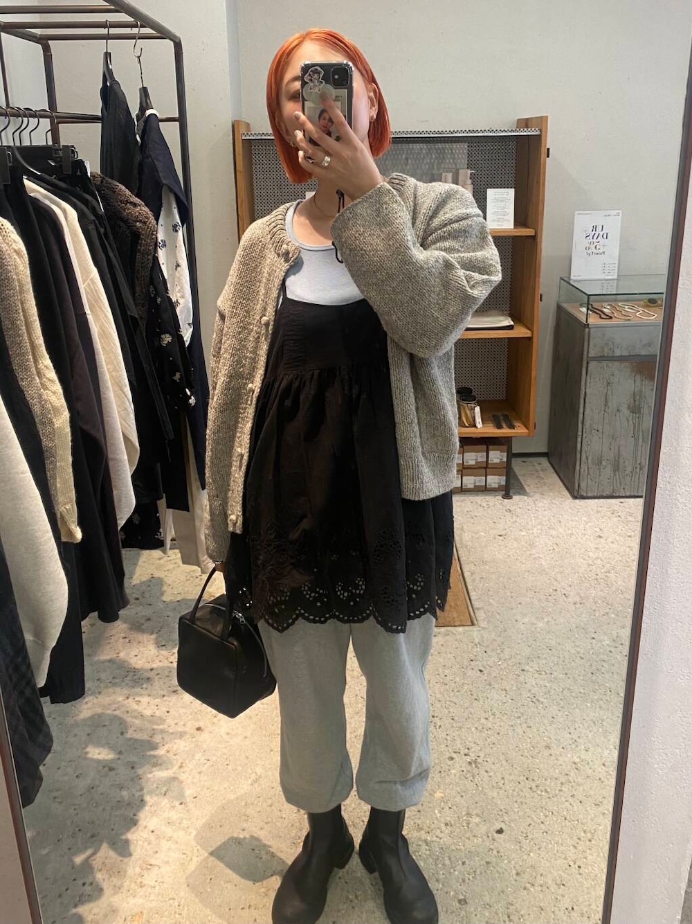 レースが可愛いキャミに軽くて暖かいカーディガンを合わせてみました。