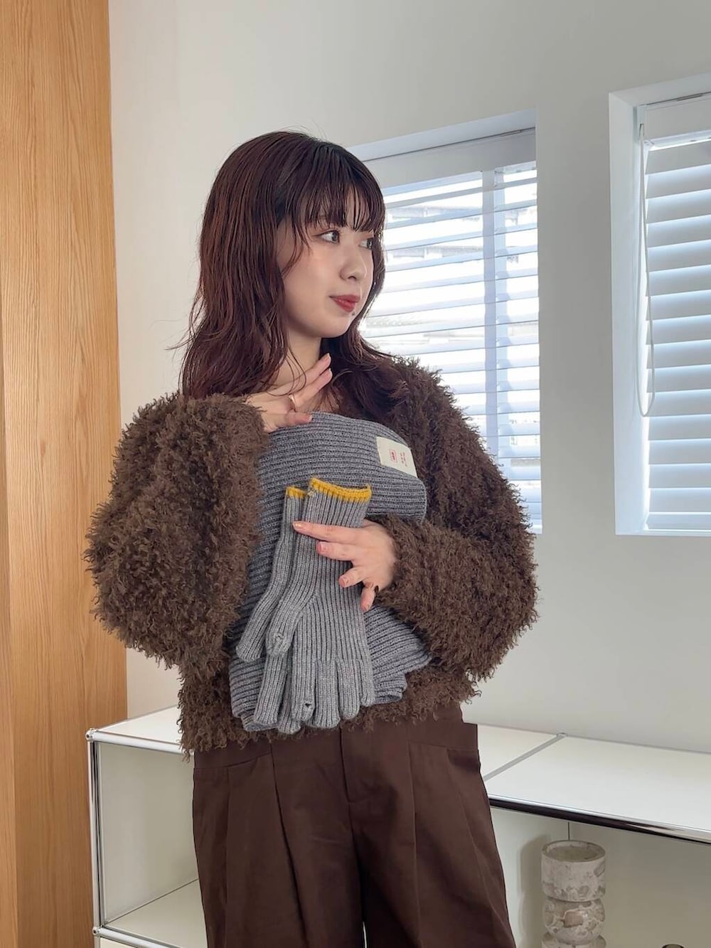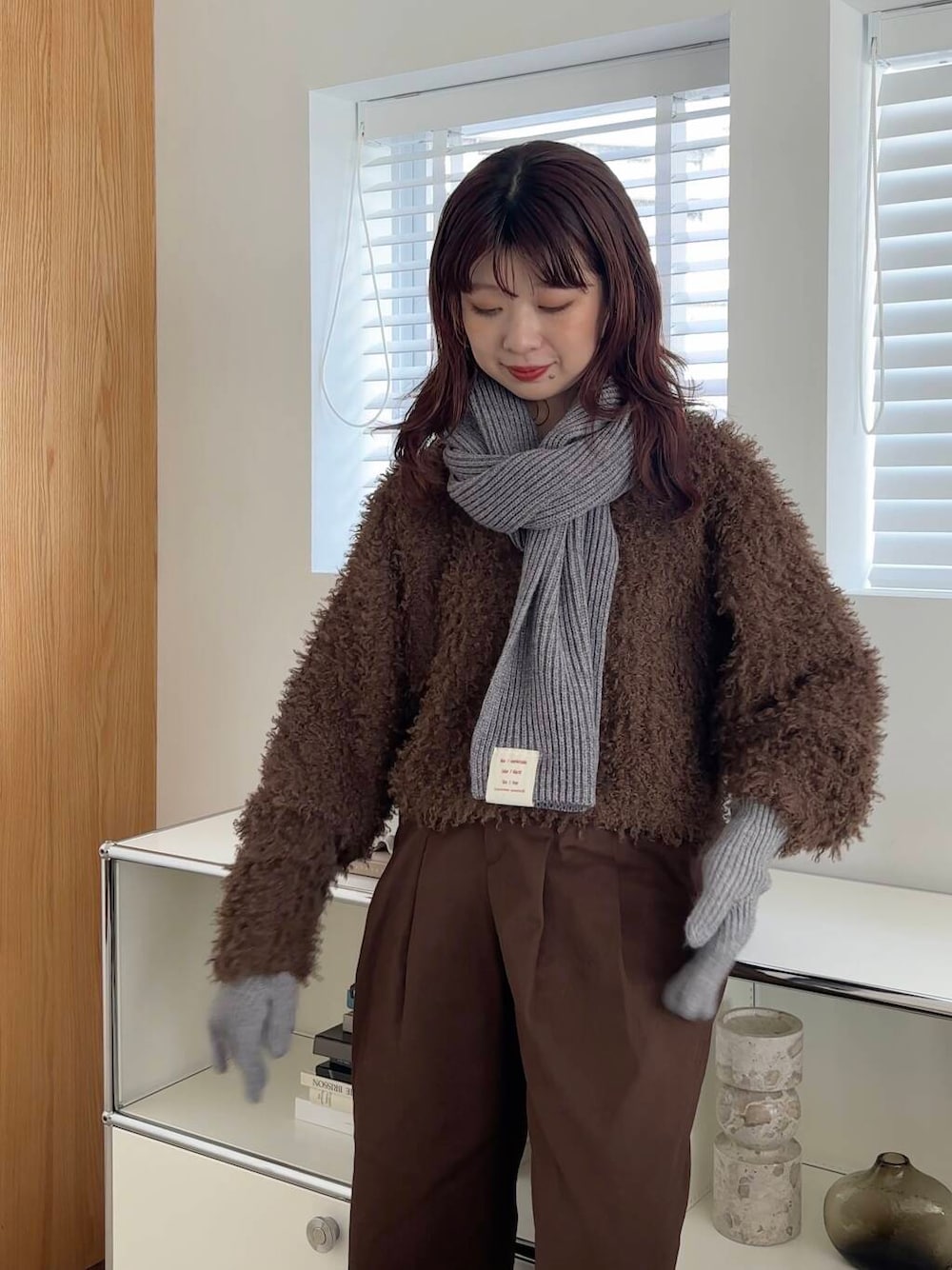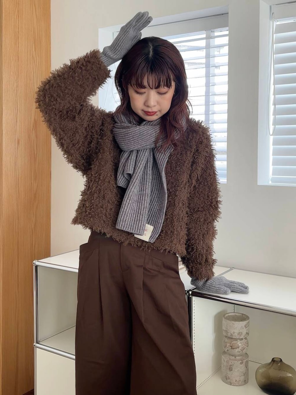 ブラウンのワントーンコーデに、小物はグレーで🩶