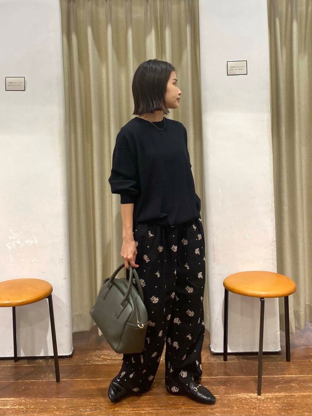 ボリューム感と刺繍の柄が可愛いパンツをメインにし、トップスはシンプルに🙆♂️