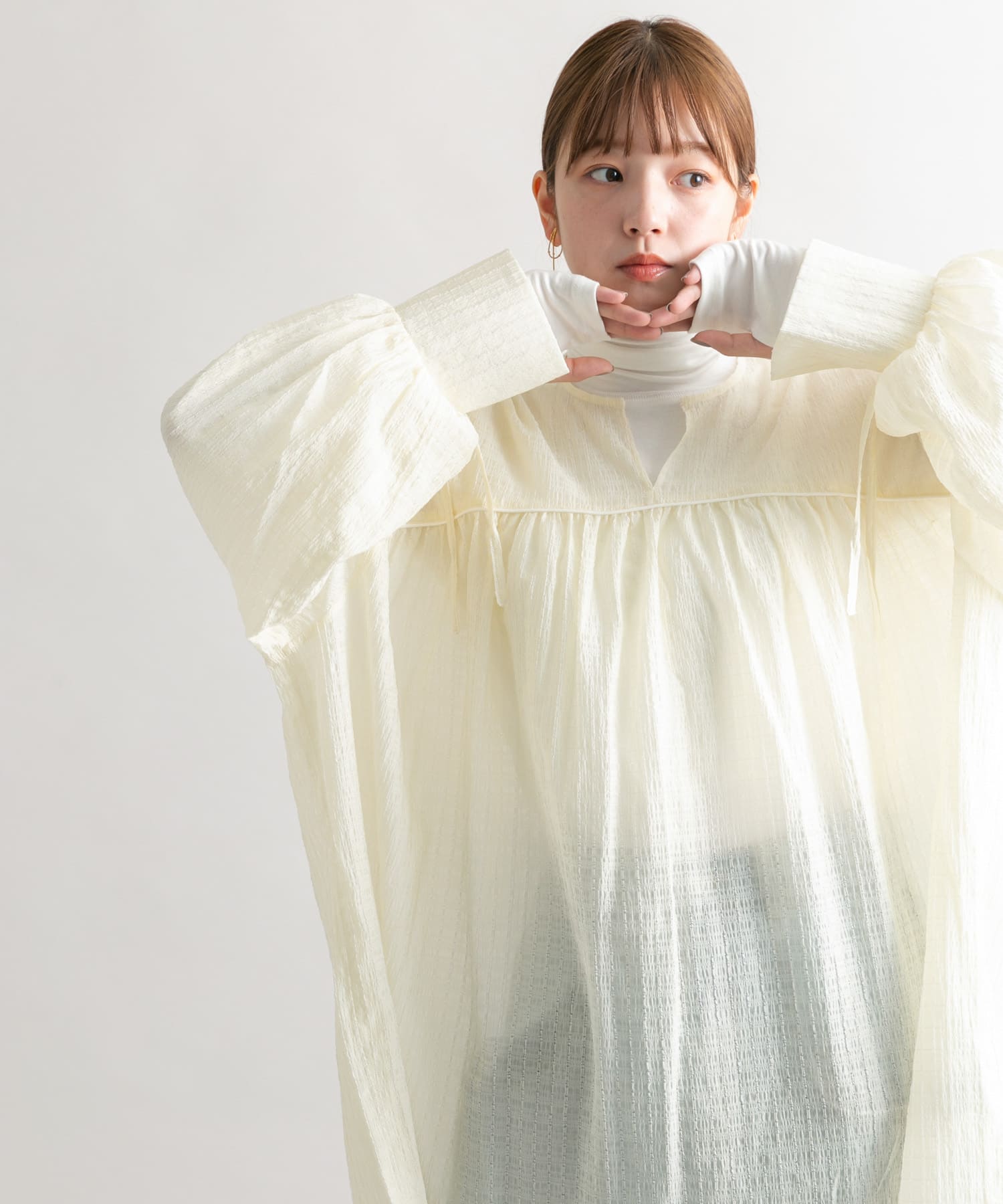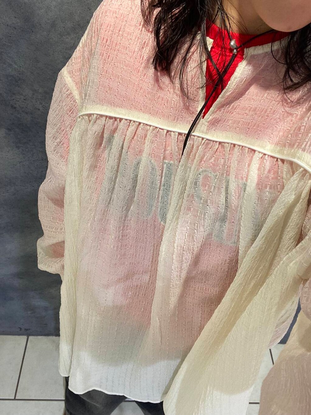 透け感あるのでカラーものを入れたり、タートルネックを合わせたりアレンジ楽しんでくださいね🥹❤️