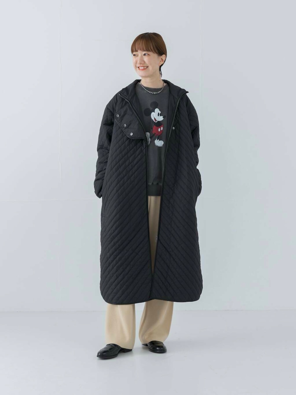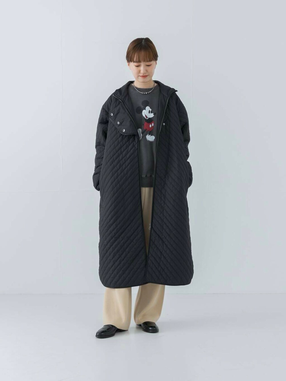 ・スタンドカラーキルティングロングコート