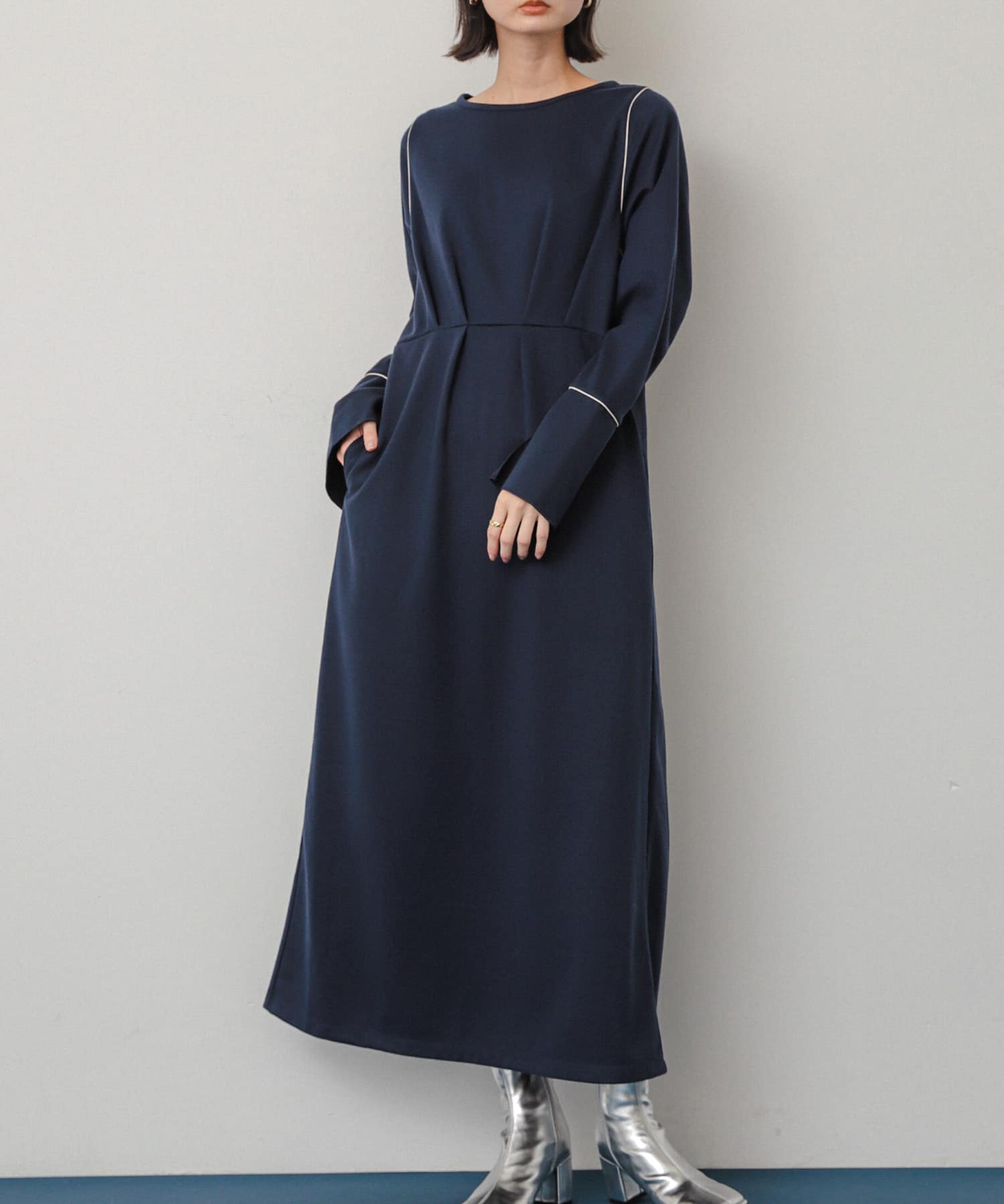 ウエストタックのデザインで、 スタイルアップ効果最強!!そして、細いパイピングのデザインは全身をよりスリムに見せてくれます🙆♀️