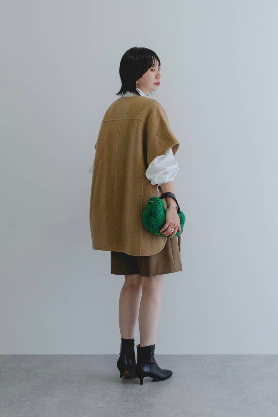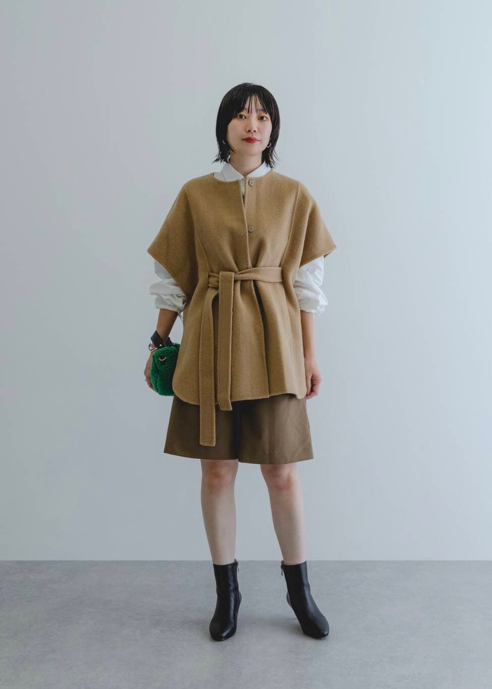 ポンチョコート×ショートパンツという、今だからこそ楽しめるコーディネート🍂