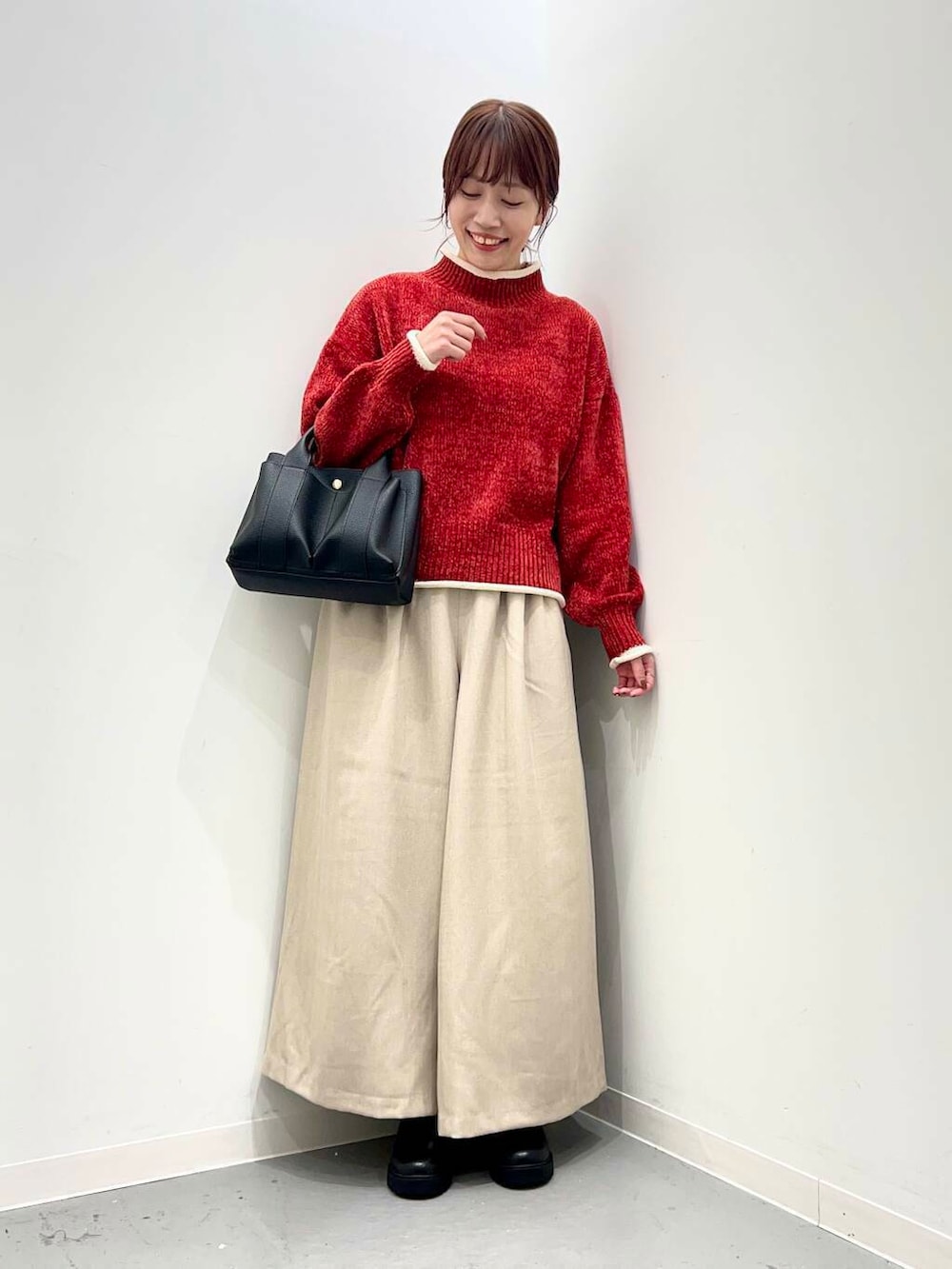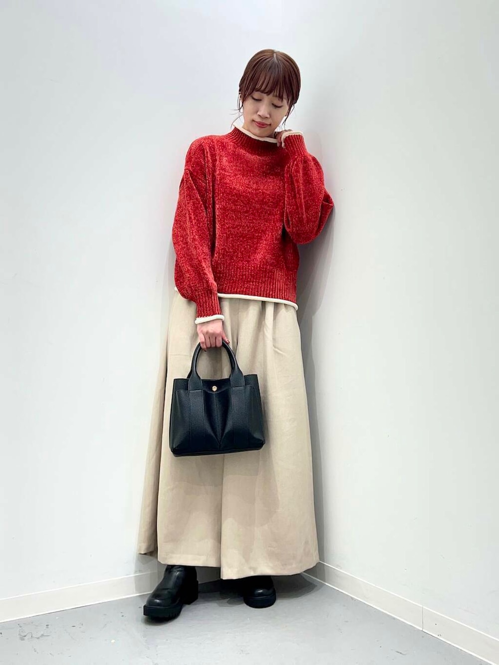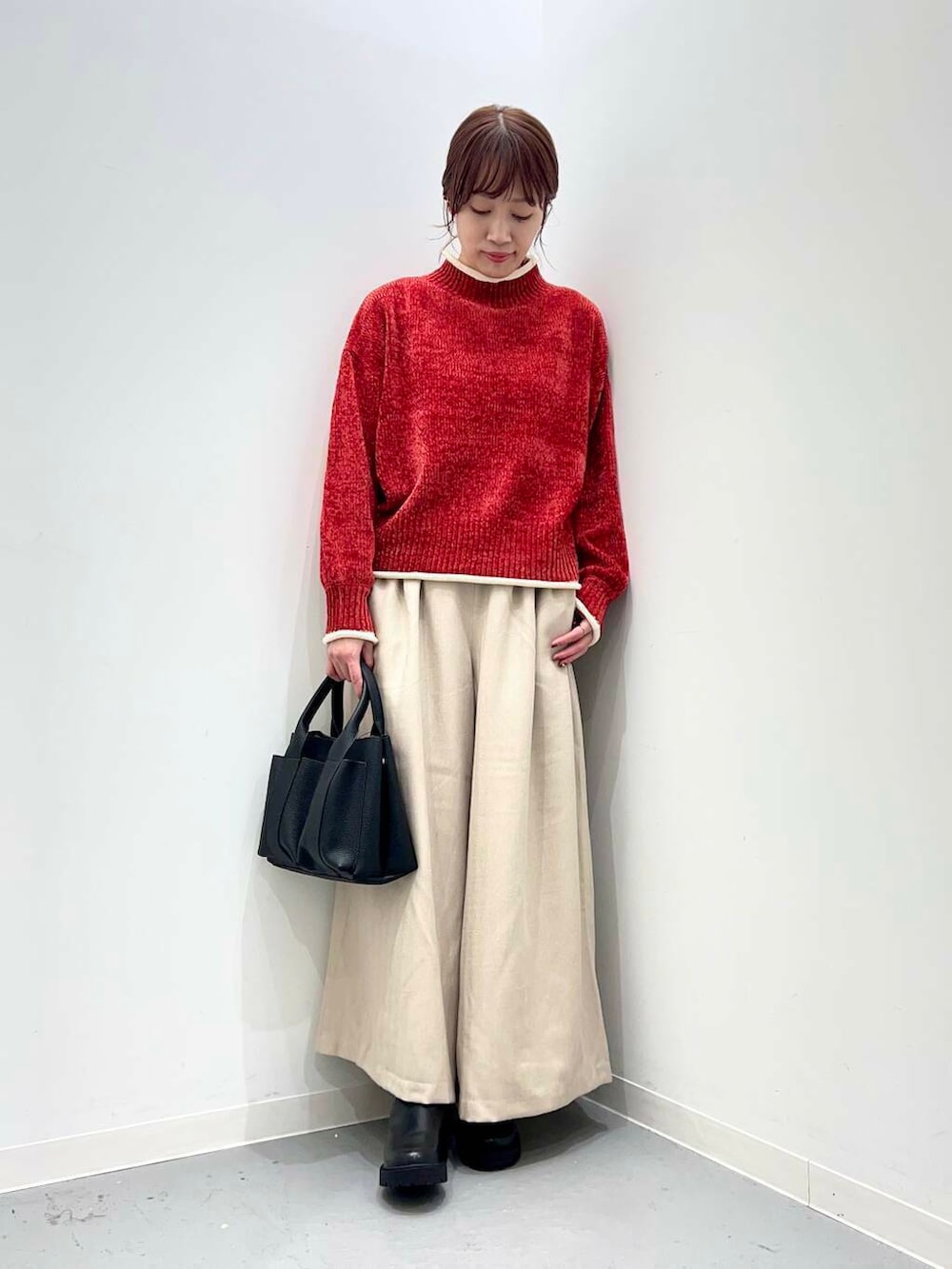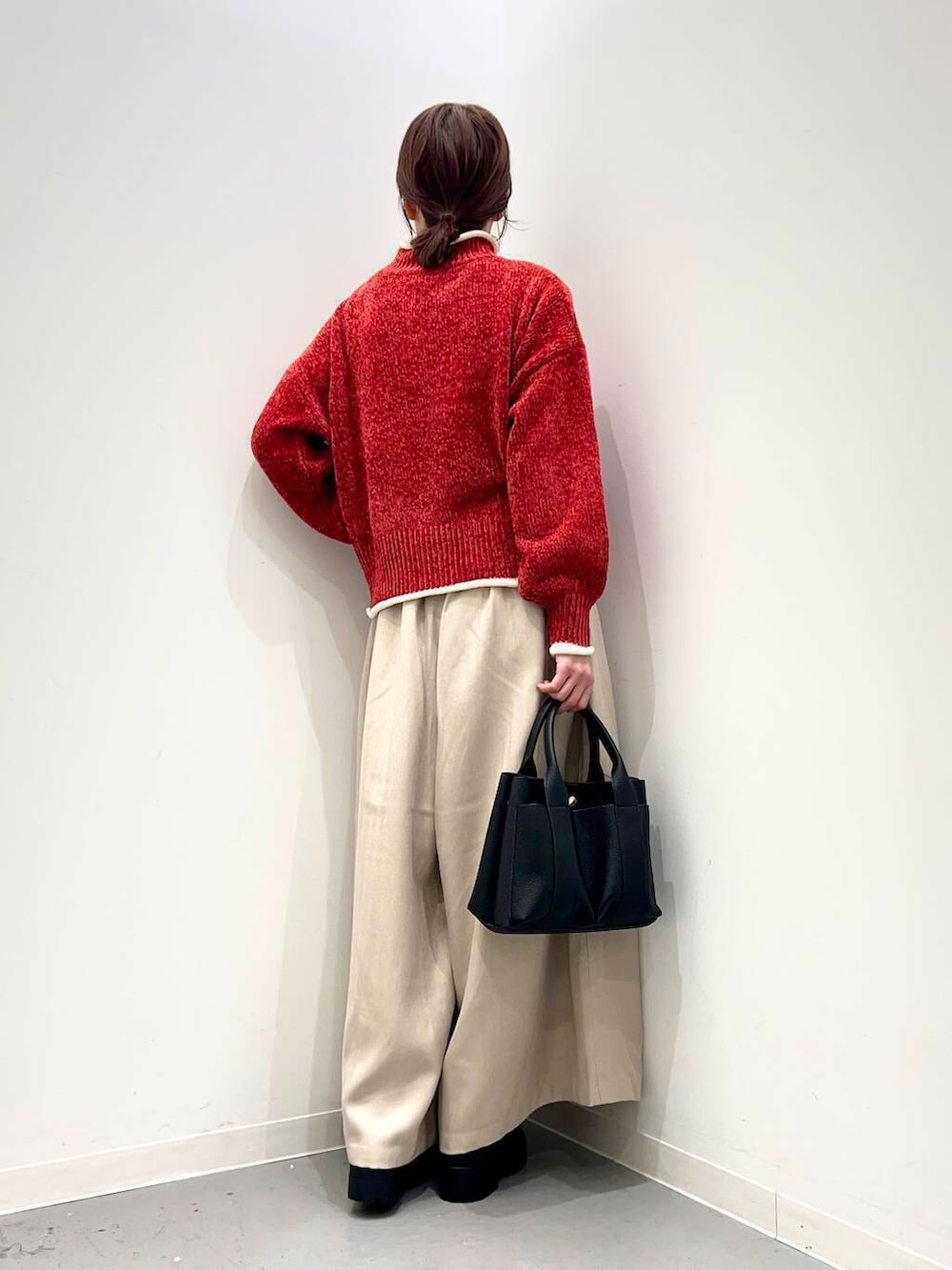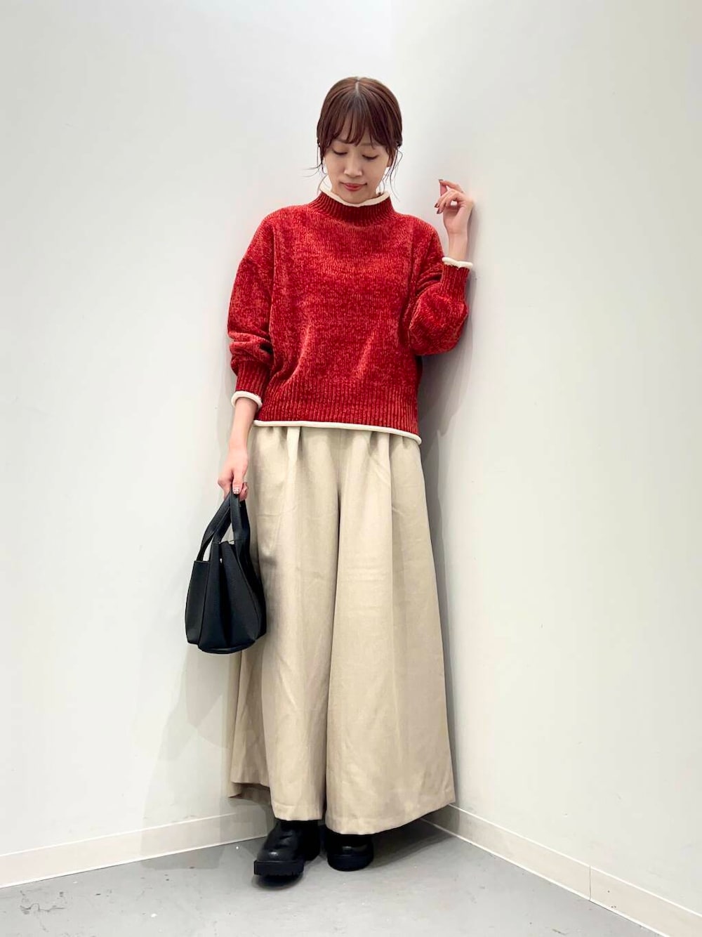 柔らかい肌触りのモールニットは裾、襟元、手首の