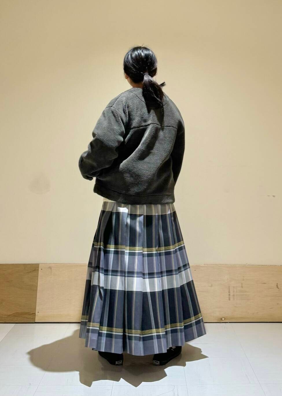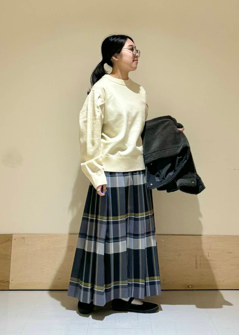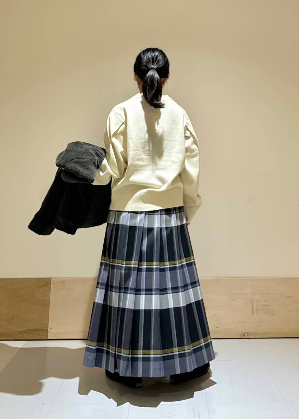 落ち着いたカラーなので、チェックプリーツでも甘くなりすぎないです◎