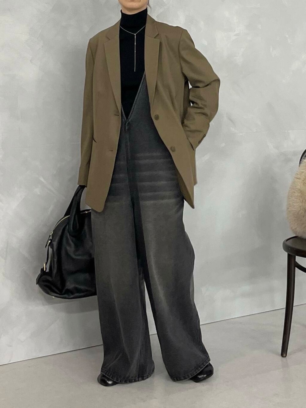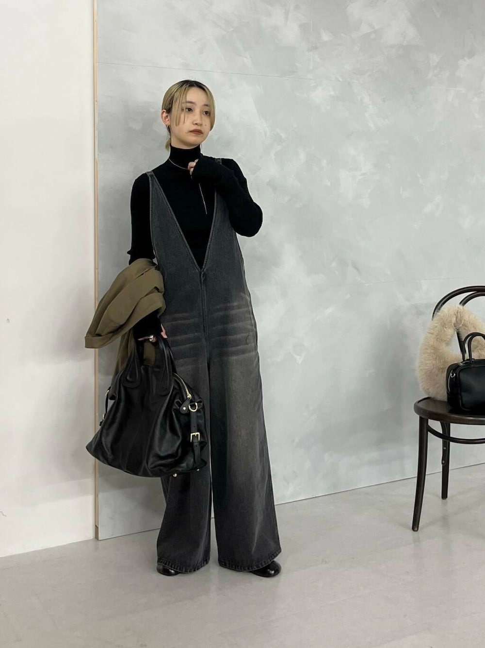 デニムサロペットはほっこりした印象になってしまいがちなのですが、モードに着れるこちらのアイテムは個人的にも気になっております☺️💡