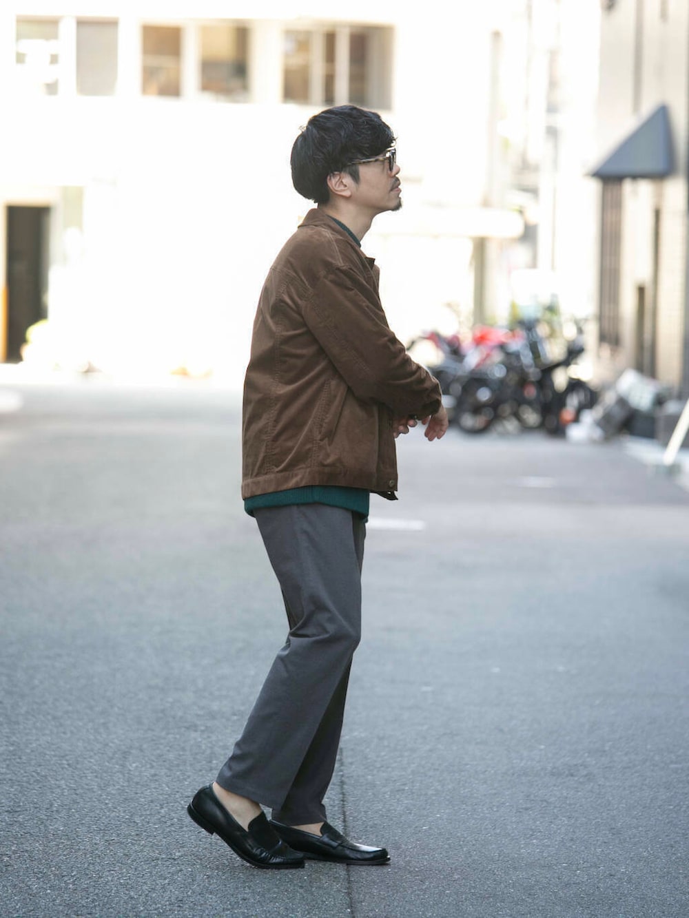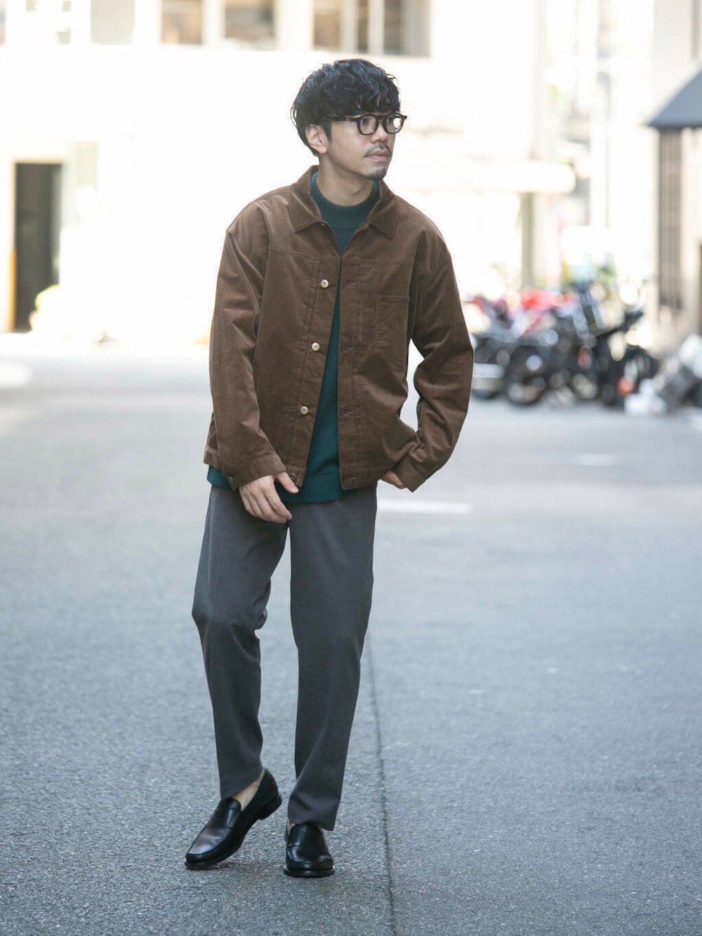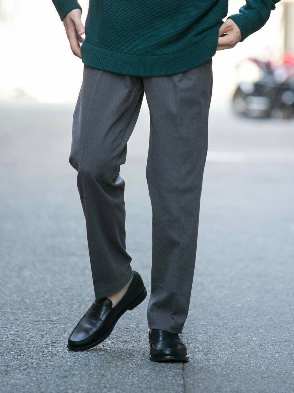オンオフどちらでも使える楽な着心地のカジュアルスラックス
