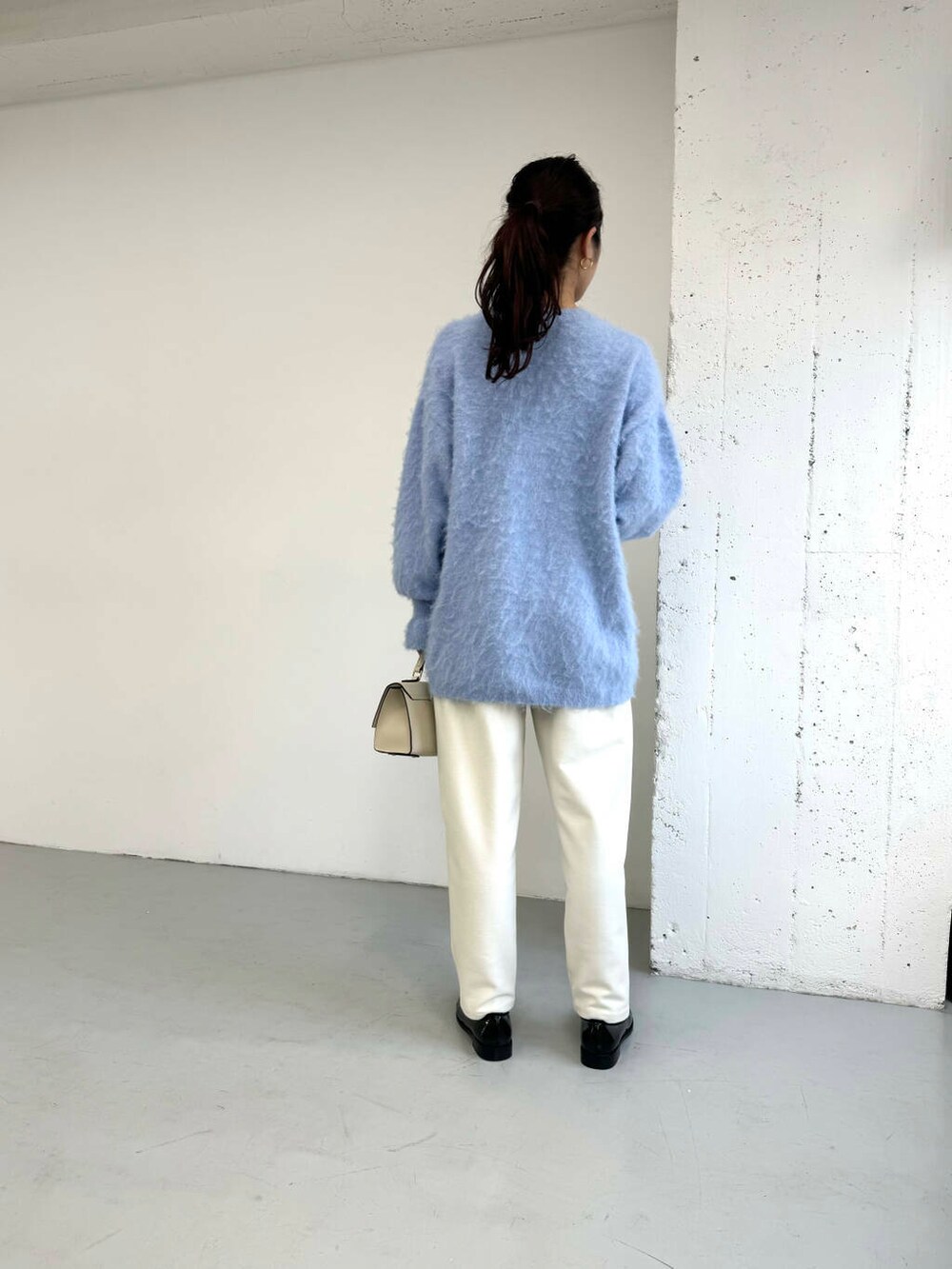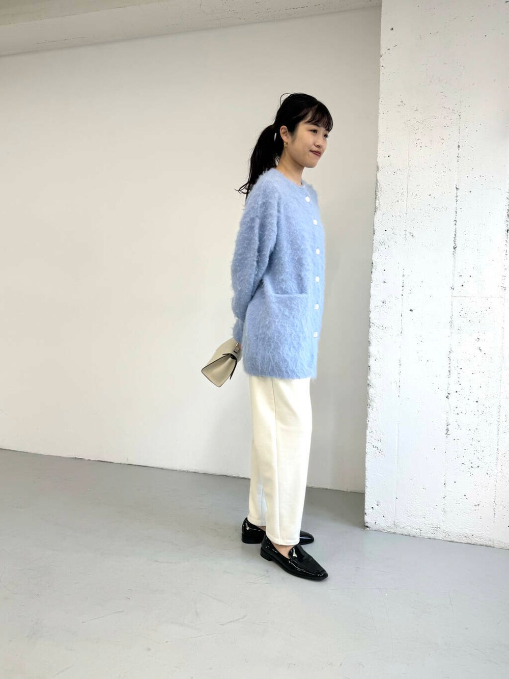 ふんわりとした肌触りのシャギーカーデを着用しました♪
