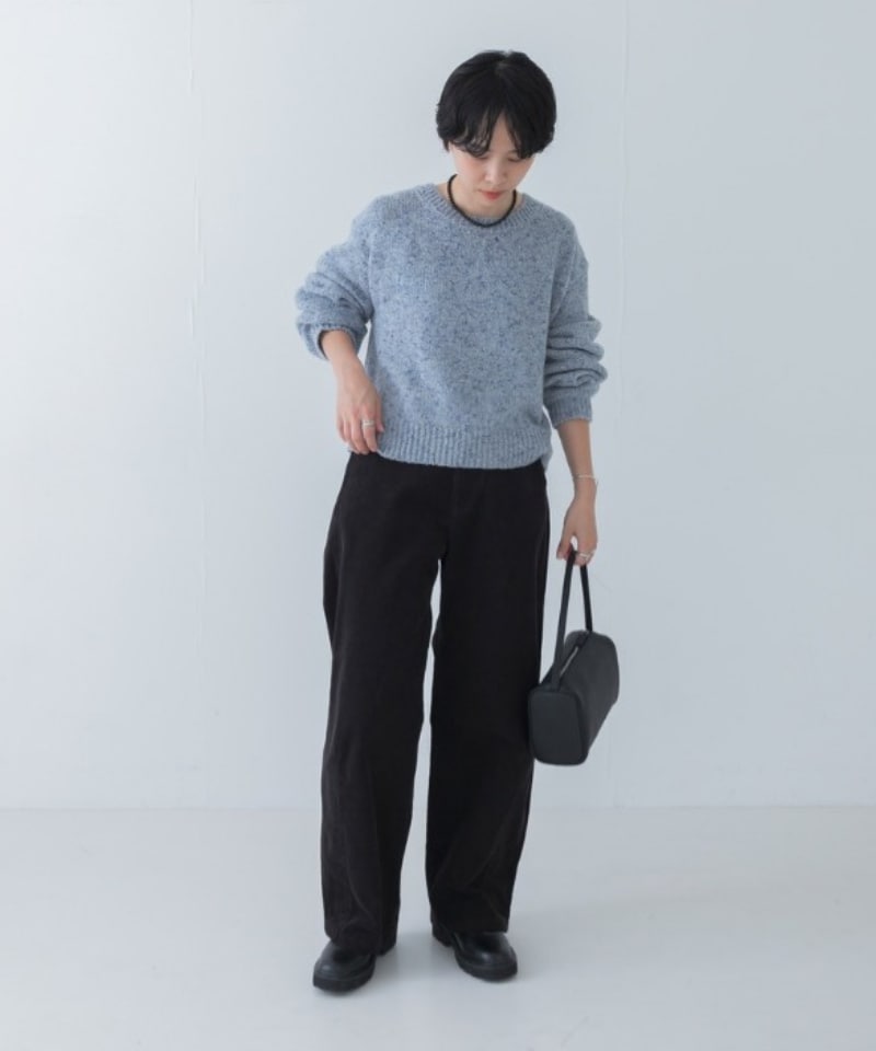 綿100%の14ウェールコーデュロイを使用し、製品洗いを施すことでカジュアルな風合いに。裾に向かって緩やかにカーブする女性らしいシルエットが、取り入れるだけでトレンドを押さえたスタイリングに仕上げてくれます。ヒップ周りにはゆとりを持たせつつ、ハイウエストなのでスタイルアップ効果も◎