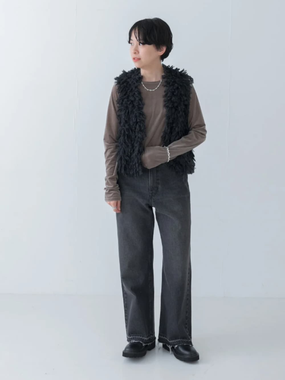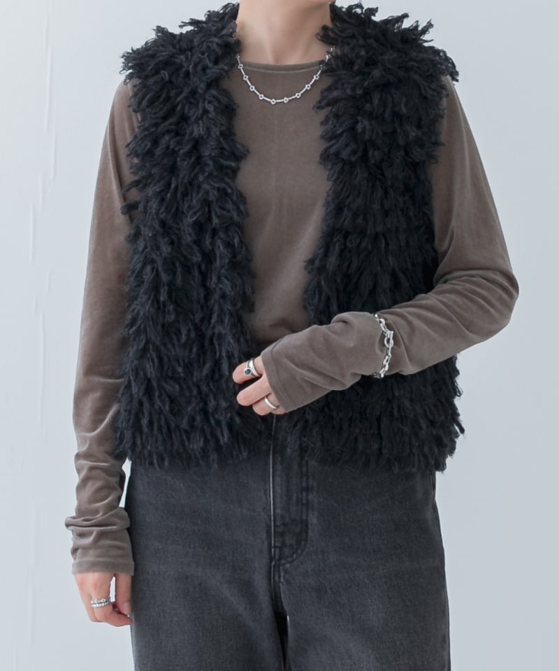 ループ編みで程よいボリュームがありながらも、目線を上にあげてスタイルが良く見える着丈にこだわりました。