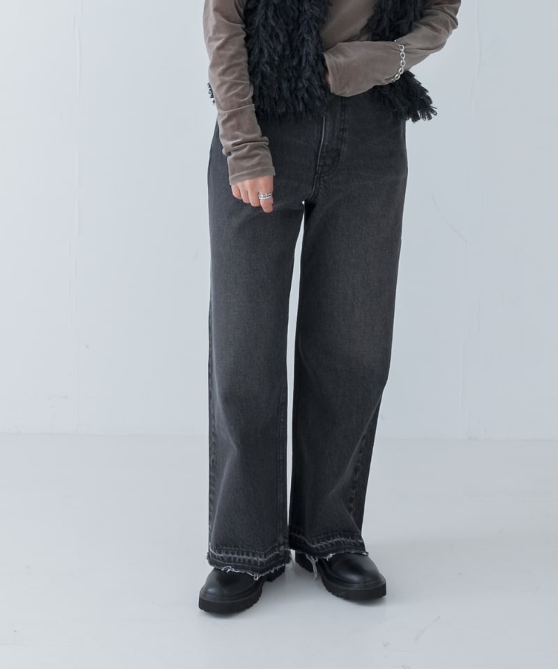 腰回りに程よいゆとりを持たせたストレートシルエットで、体のラインを拾わずストレスフリーな履き心地に。ベーシックな形ながらも裾やポケット周りのダメージなどディティールまでこだわりを詰め込んで仕立てました。