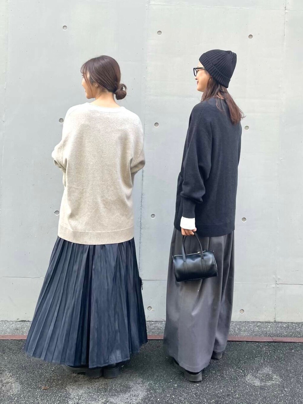 ゆったりめのサイズ感ですが、着膨れ感がなく、深めのVネックですっきりとした印象です。