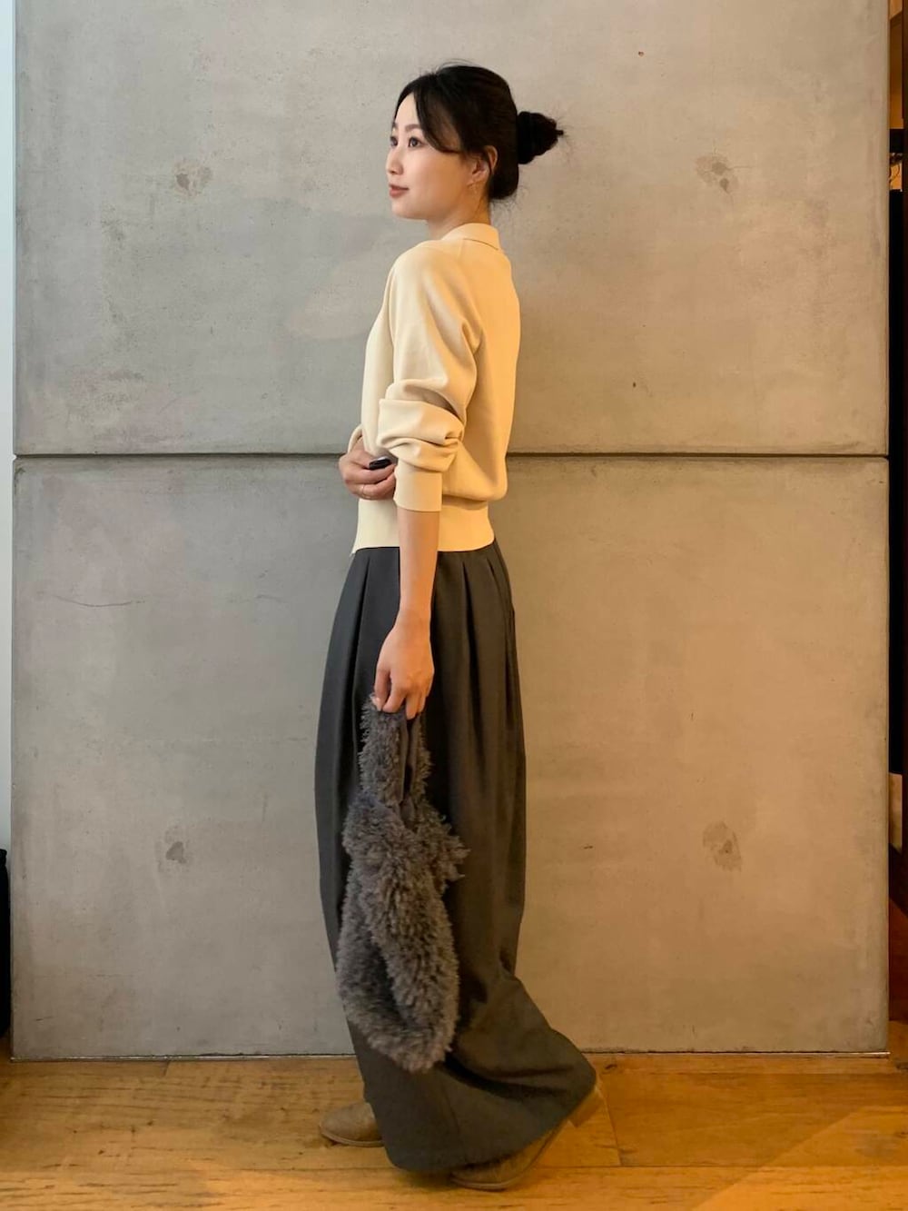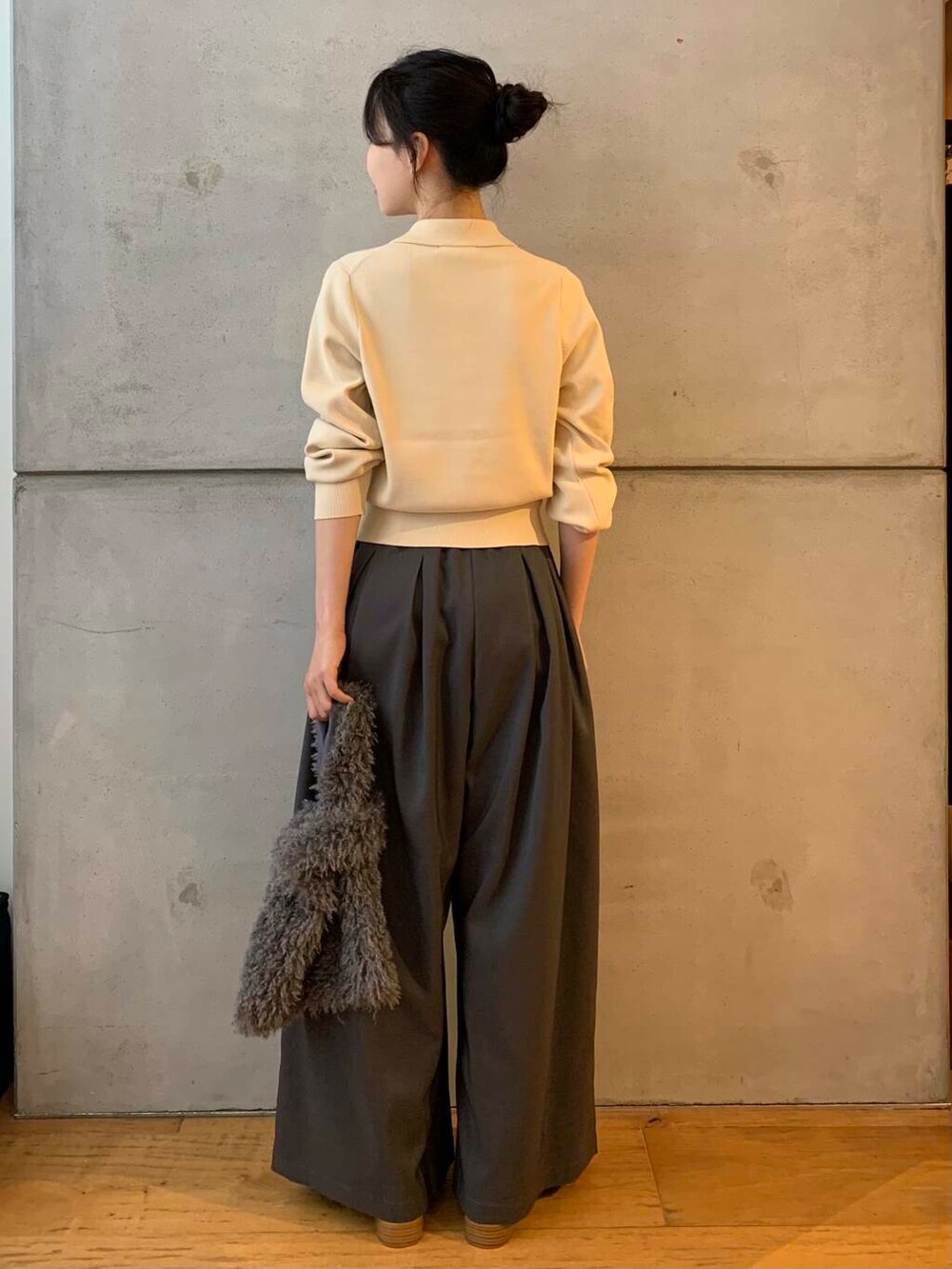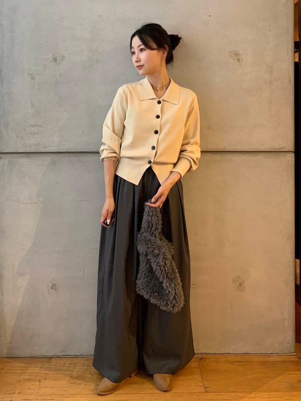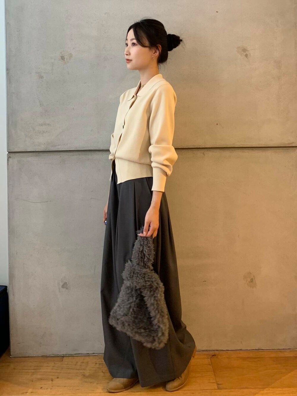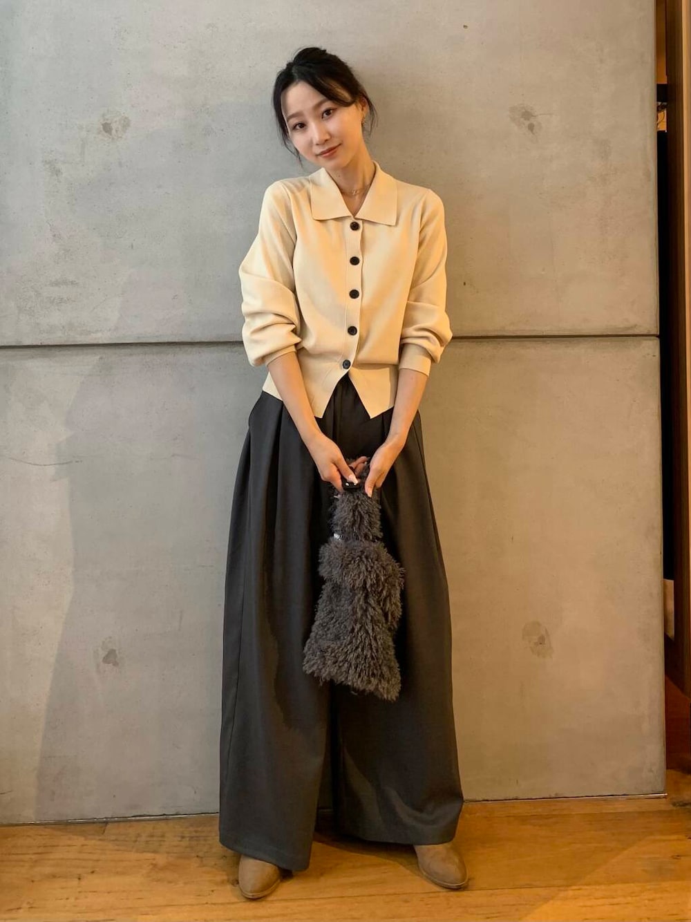 ボリューム感のあるワイドパンツと上はすっきりとしたカーディガンで合わせました!