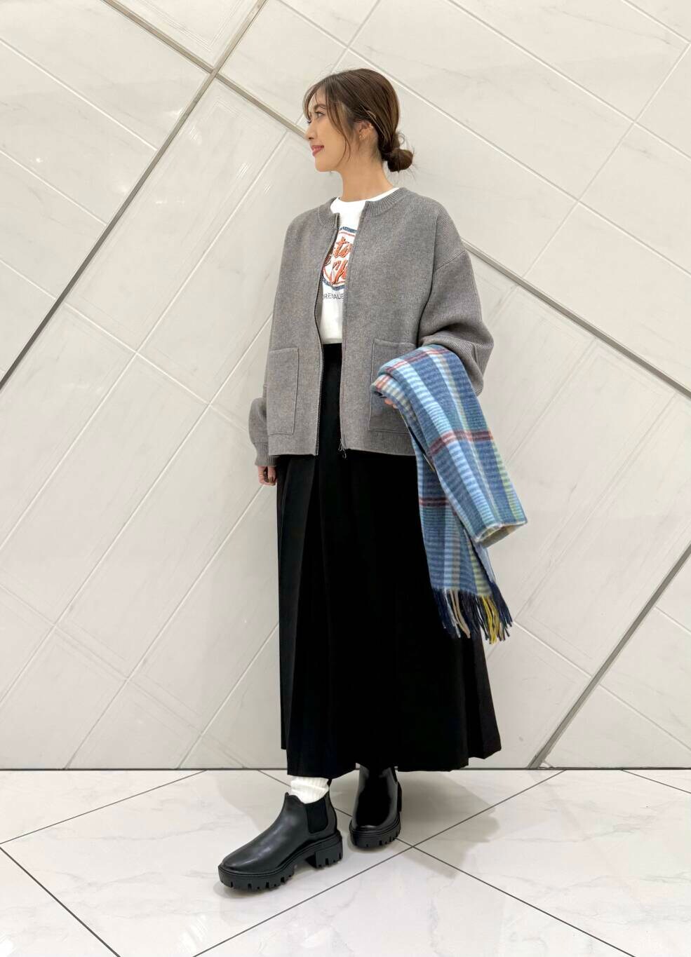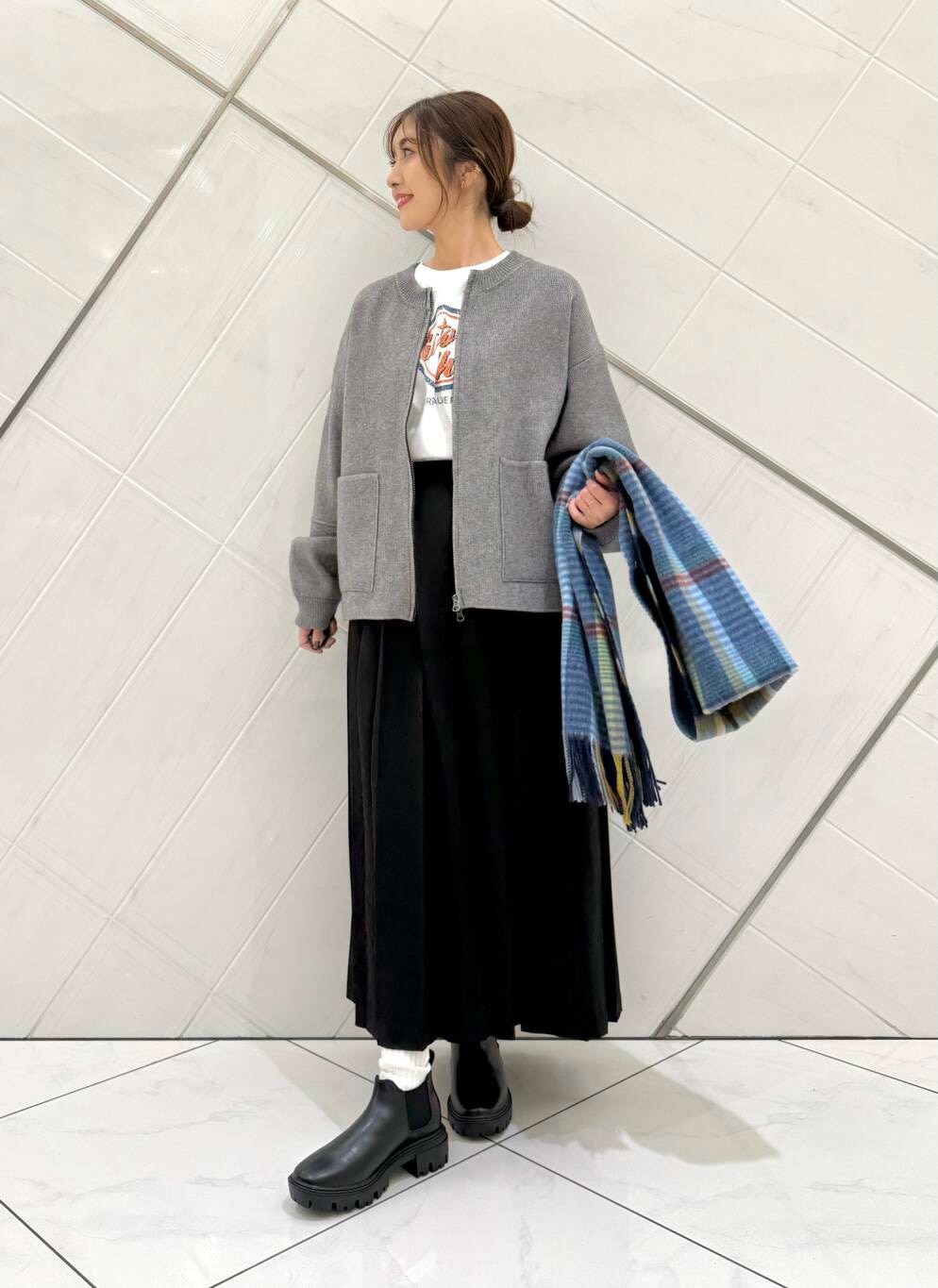ブルゾンは珍しいニット素材でしっかり厚みがあり、重さもあるので暖かいです。