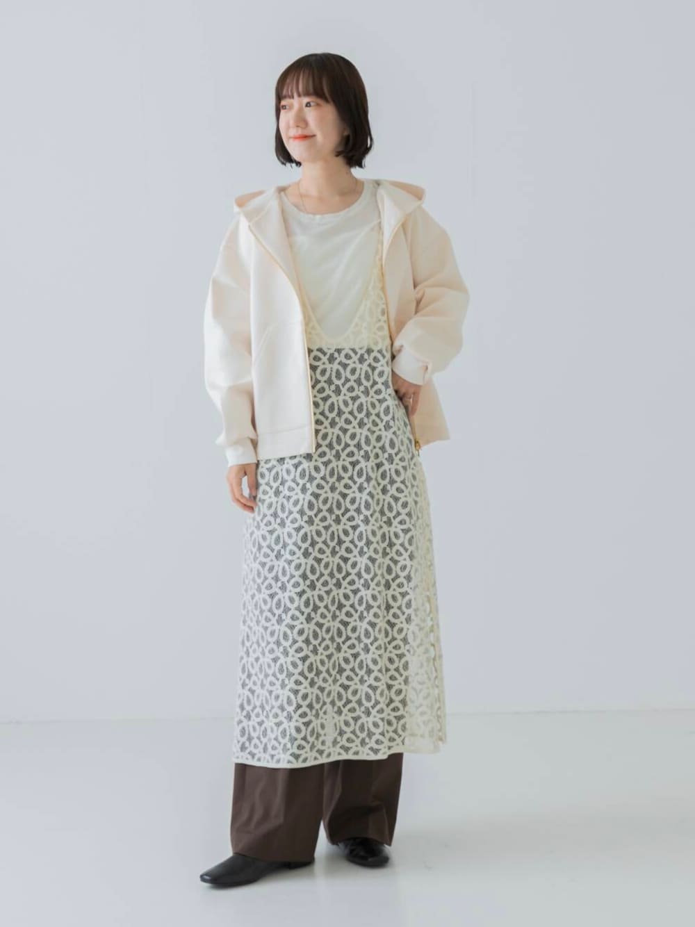 パーカーですが素材がさらっとしていて上品な感じなので、カジュアルになりすぎないです◎