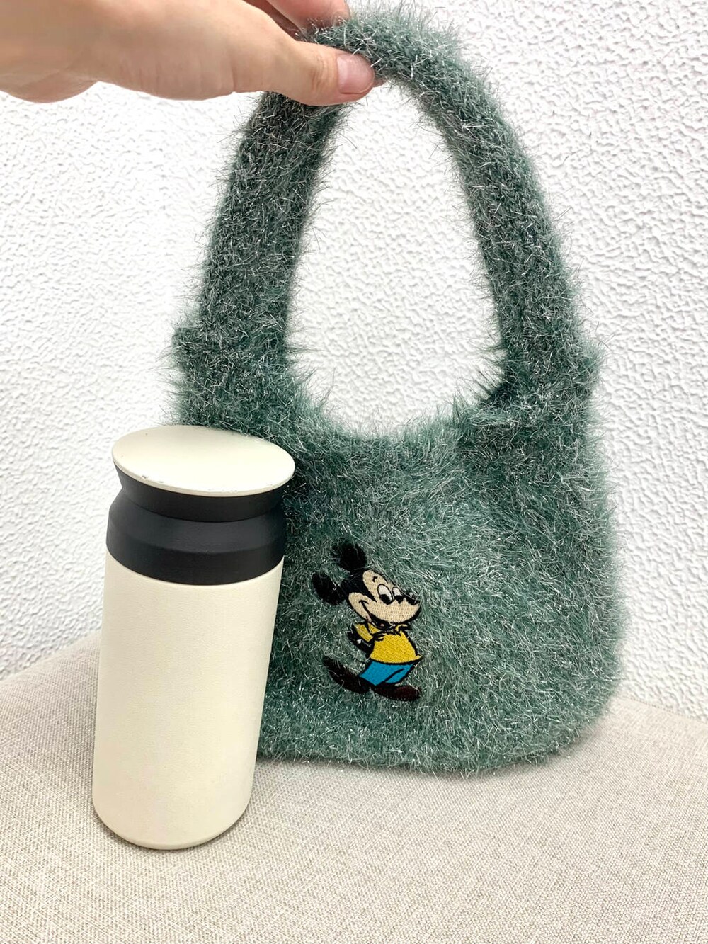 350mlの水筒がすっぽり、財布ハンカチポーチなども入りそうです!