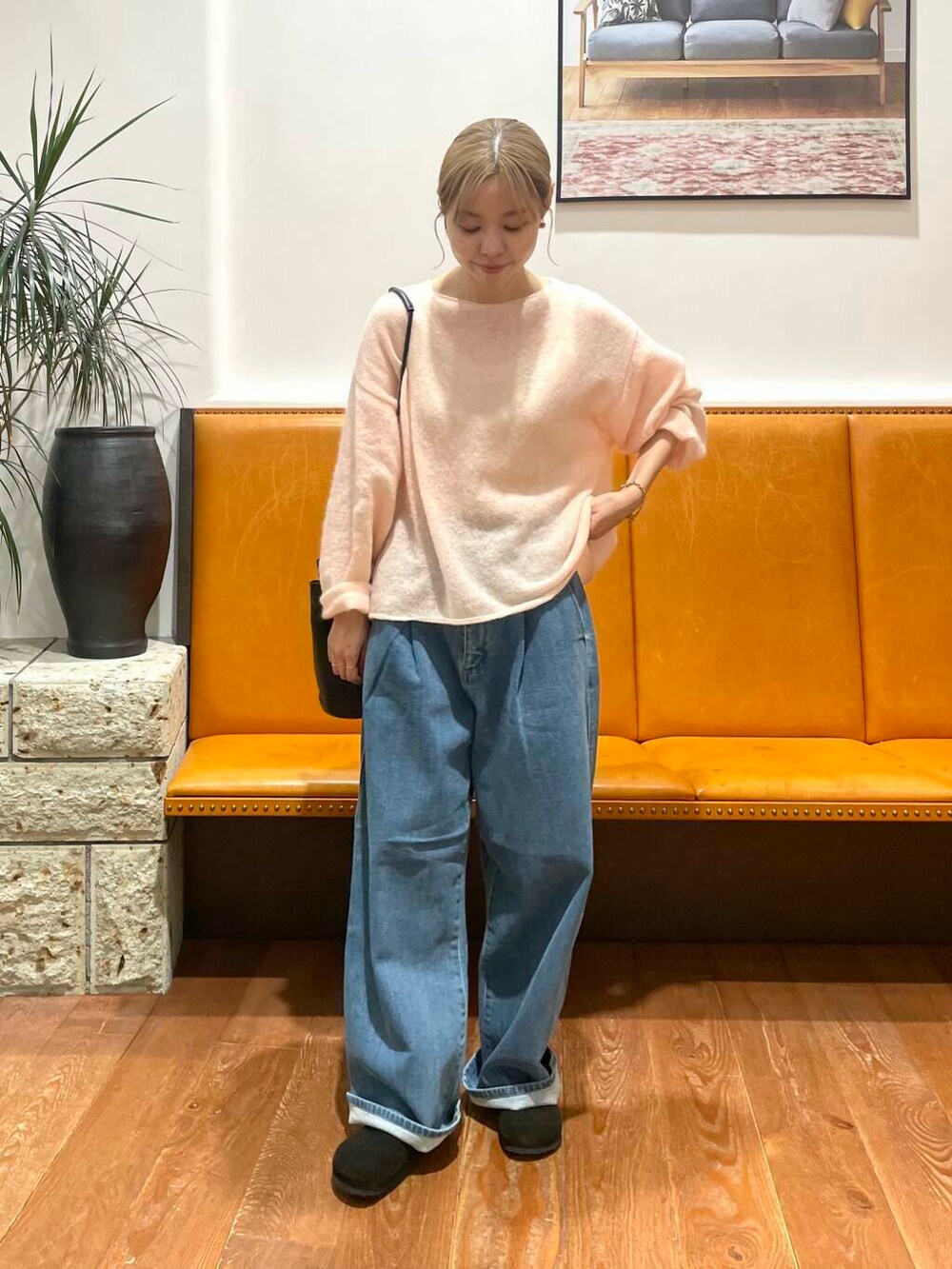 ニットは透け感のあるモヘヤ素材で柔らかい色味が可愛いです♪