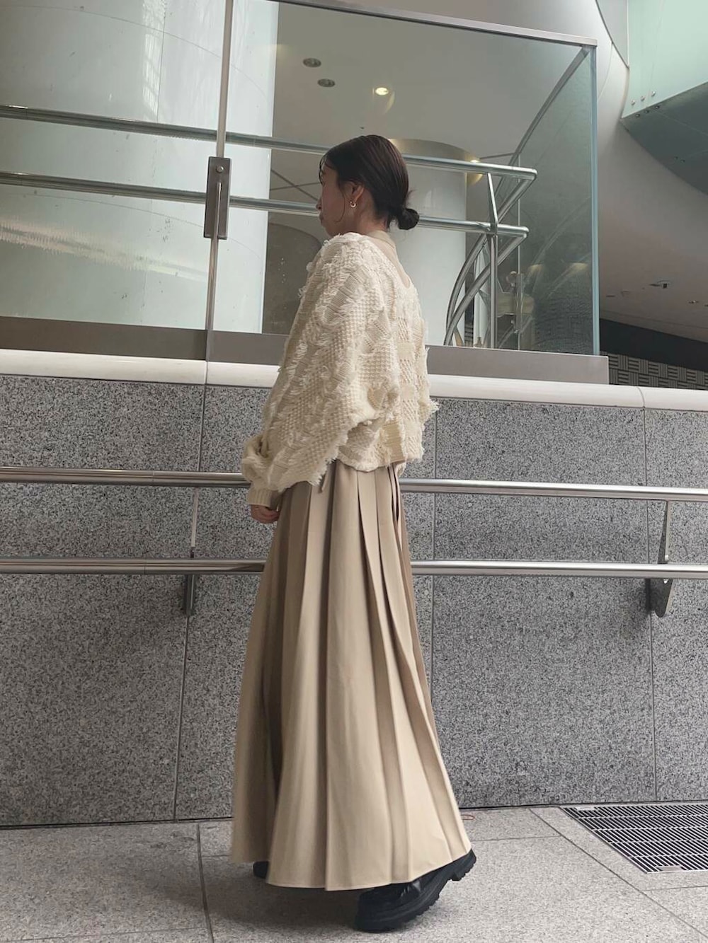 一枚でも様になりますが、カーディガンと合わせて大人かわいいコーデにしました◎