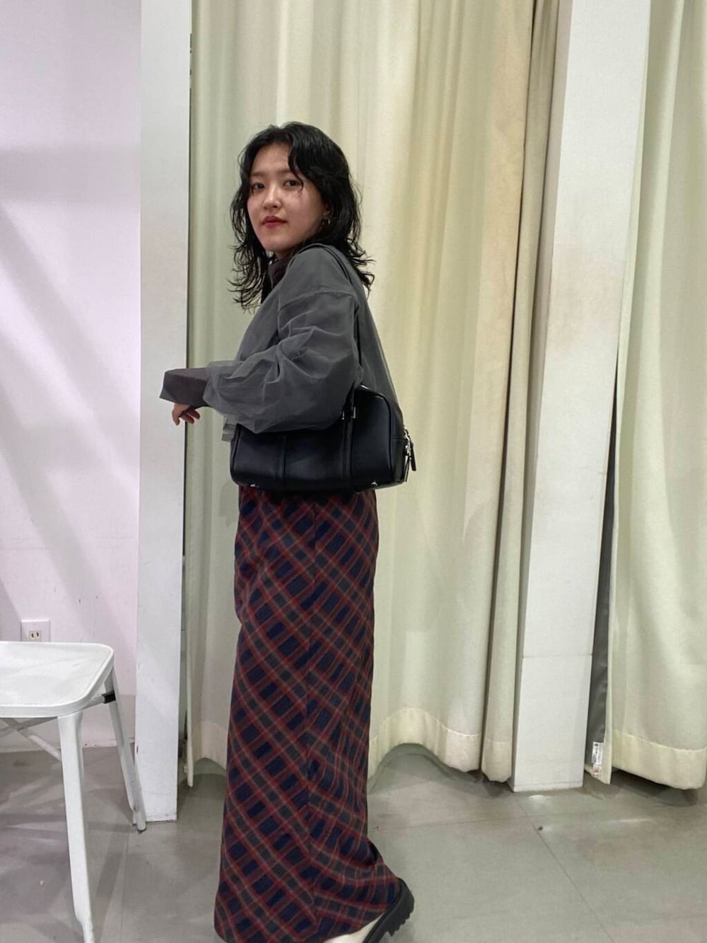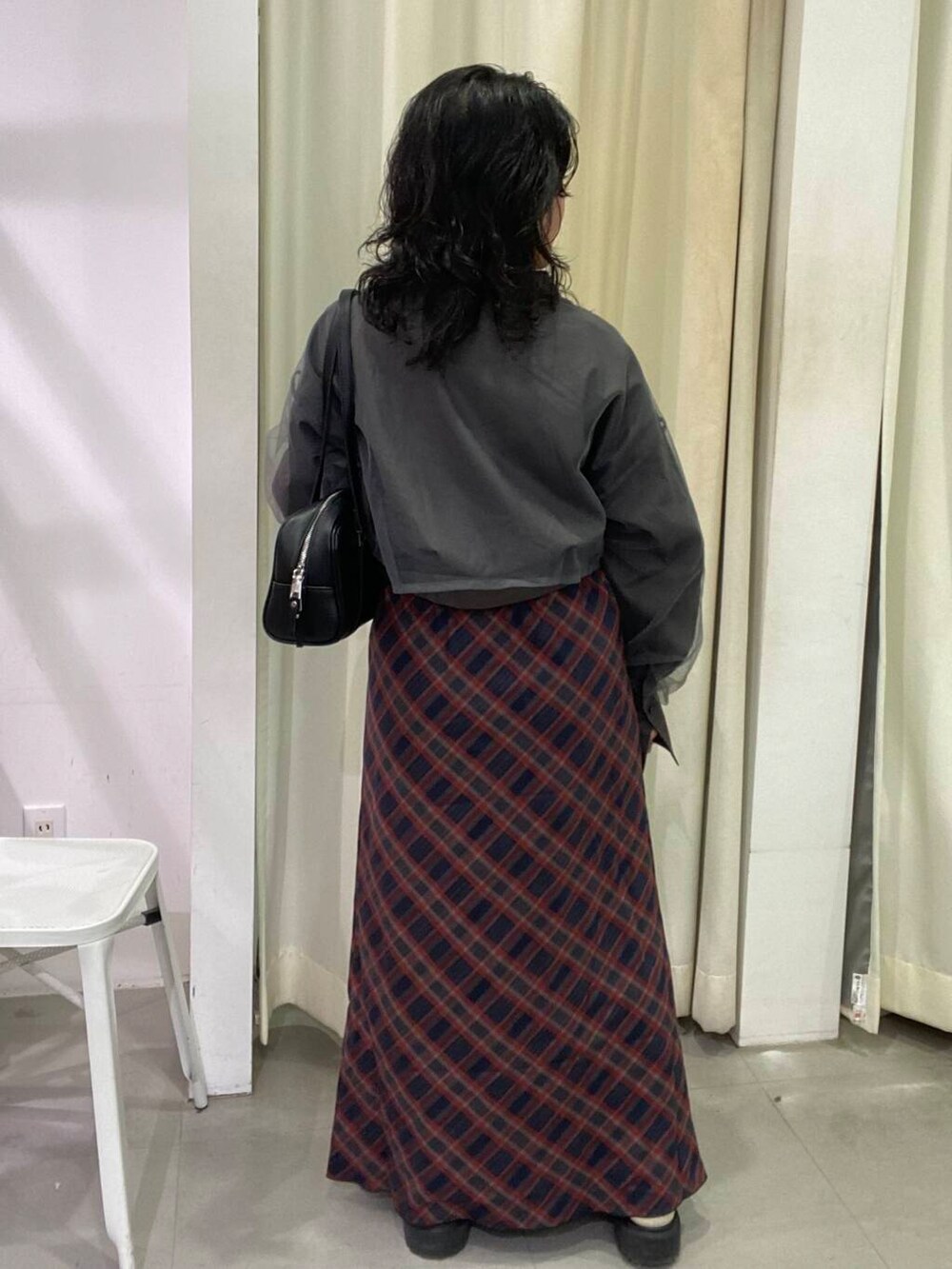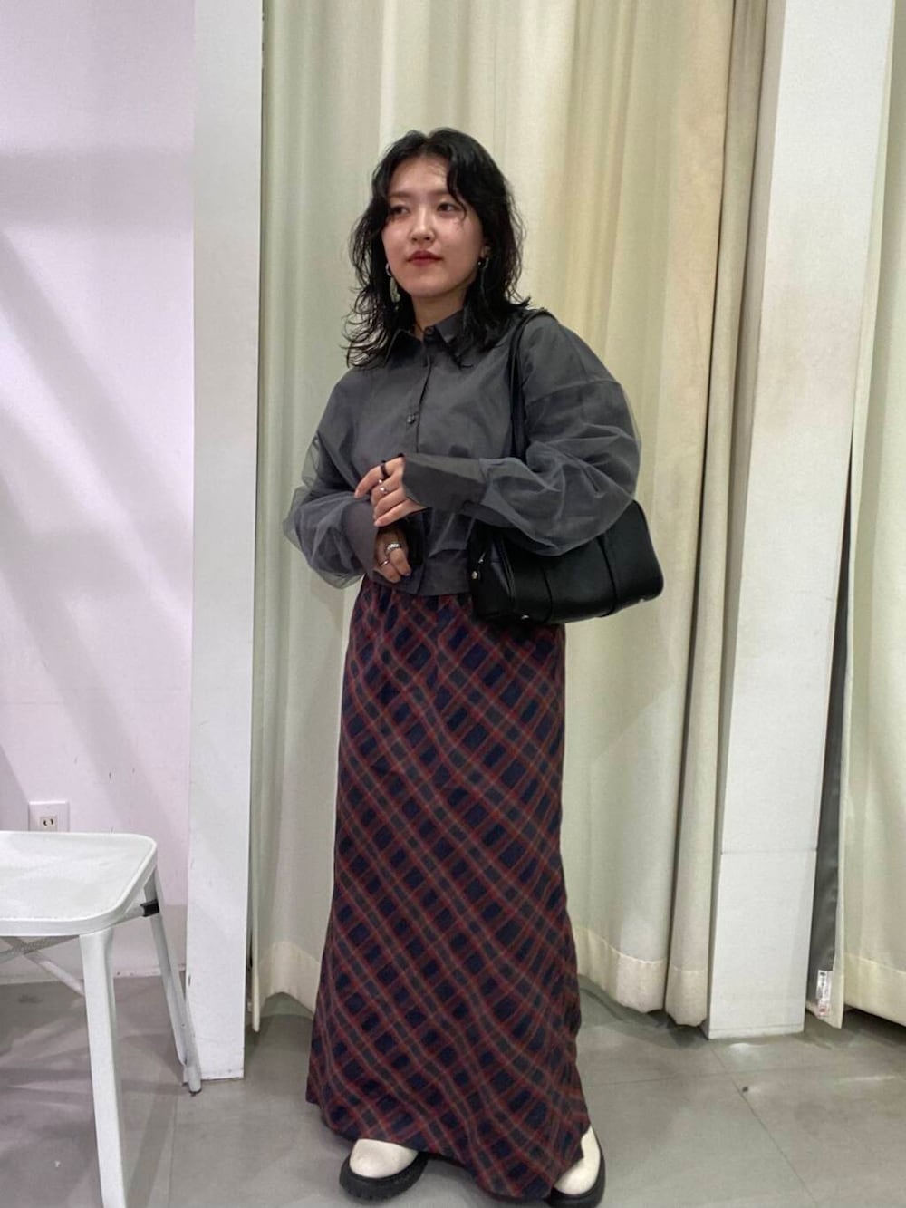 ふんわりチュールが可愛いクロップドシャツと、大人気チェックナロースカートのクラシックな組み合わせ🥹❤️