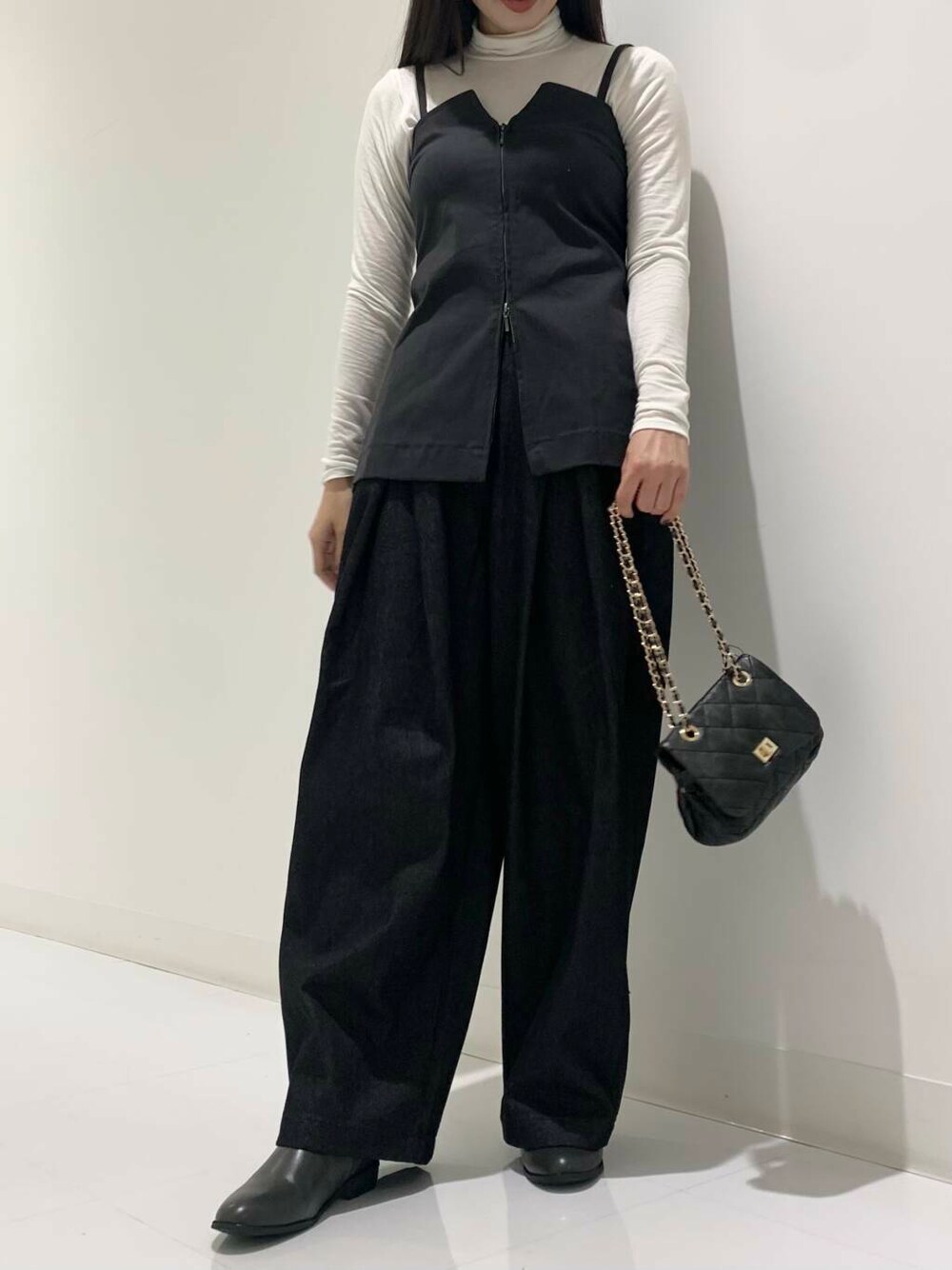 ボリュームのあるデザインが素敵なのでトップスはすっきりめのアイテムを合わせてメリハリのあるスタイルもおすすめです◎