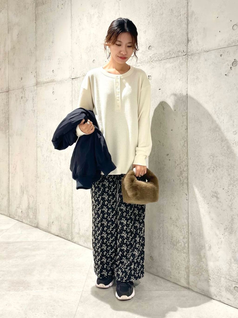 トップスが荒めなサーマルっぽい生地感なので、リバーシブルブルゾンのフラットな面を表にしてみました。