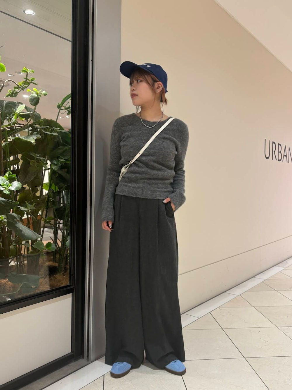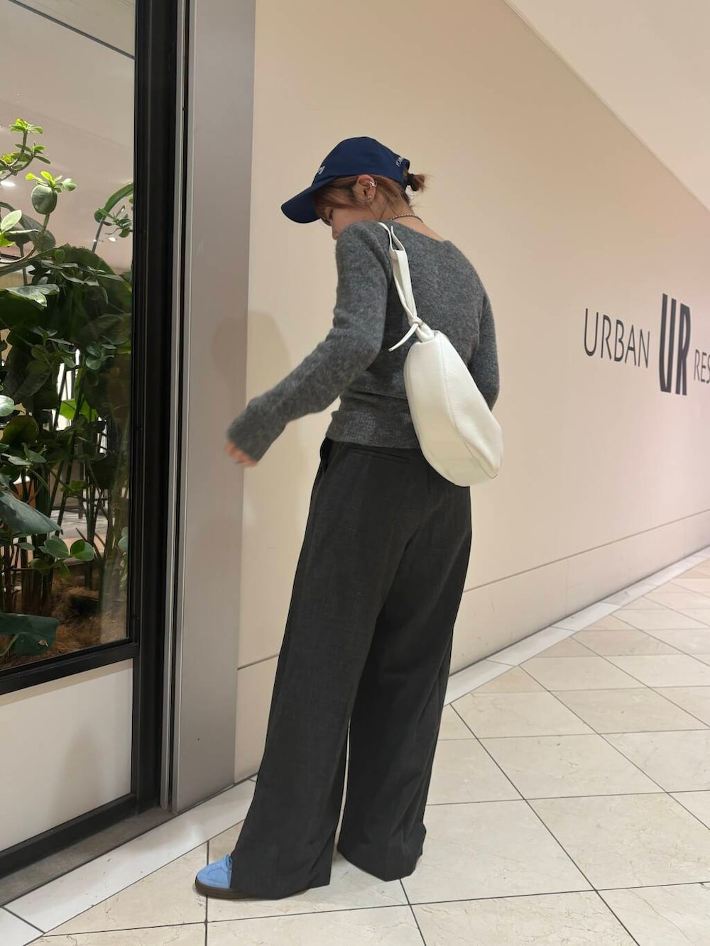 LAATOのワイドパンツは164/Mを着用。たっぷりボリュームがあるので高身長の方はMで余裕だと思います!