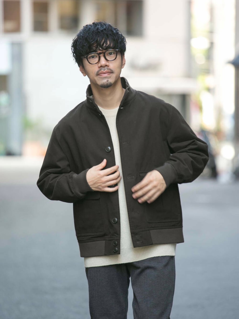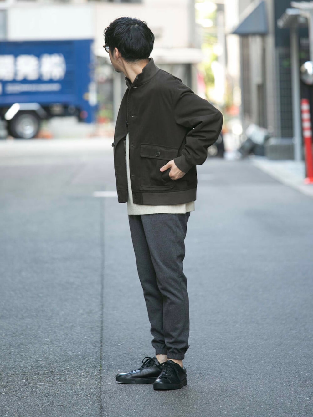 ロングセラーの大人気ニットとカジュアルスラックスに昨年のヒットしたアウターで間違いのないコーディネート!