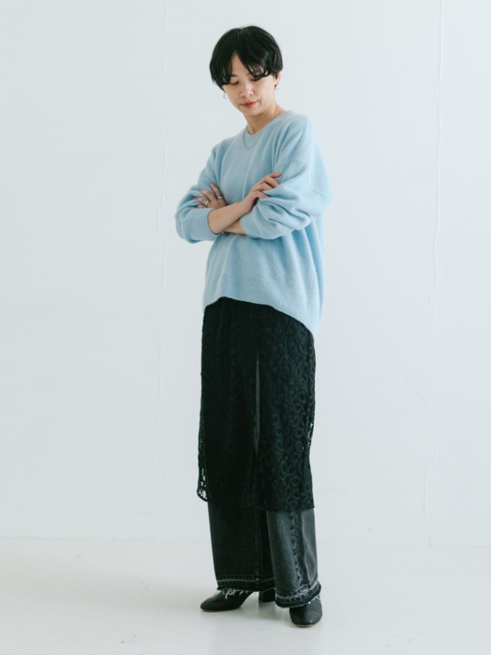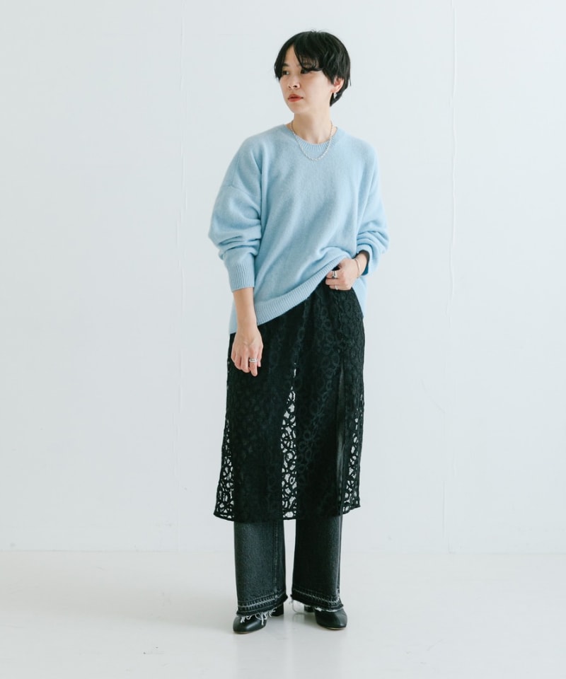 抜け感のあるデザインとベーシックカラーが甘さを抑え、大人が取り入れやすいレースアイテムに仕上げました。