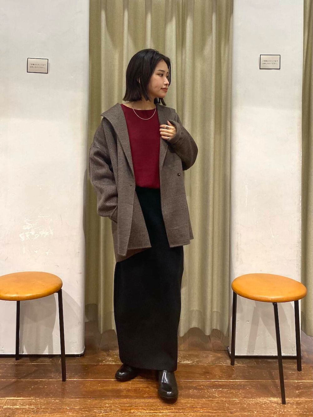 アウターはミドル丈でコクーンシルエットが可愛いです^_^
