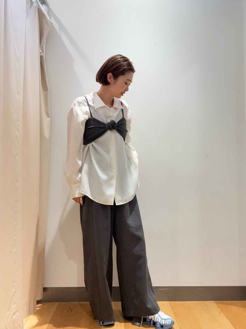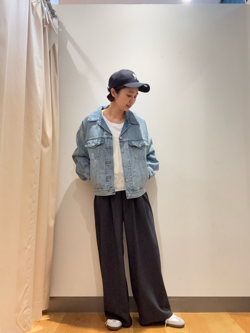 ボアジャケットがアクセントのカジュアルコーディネートです。