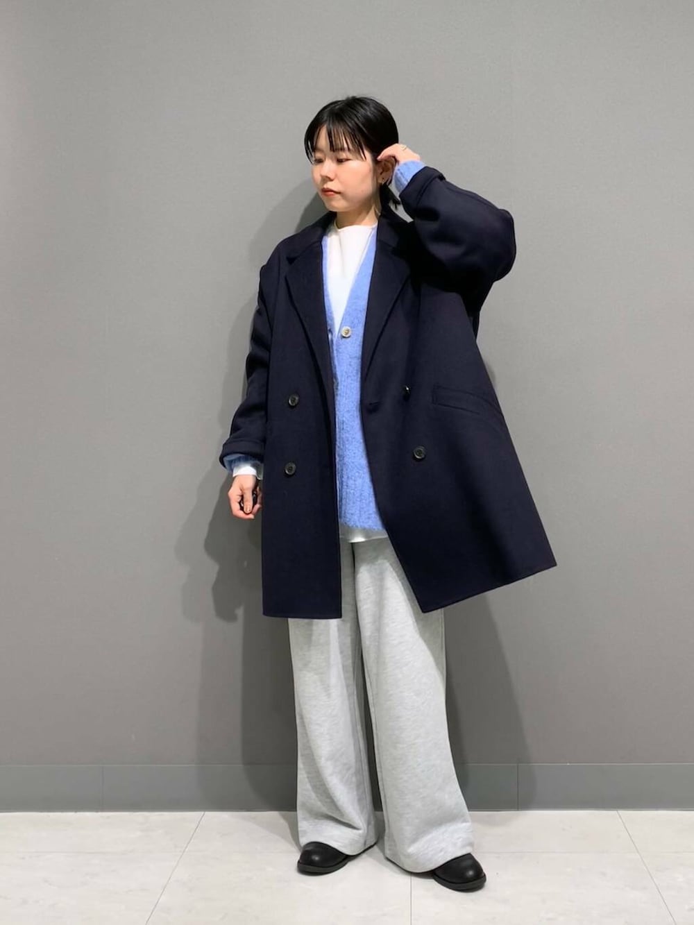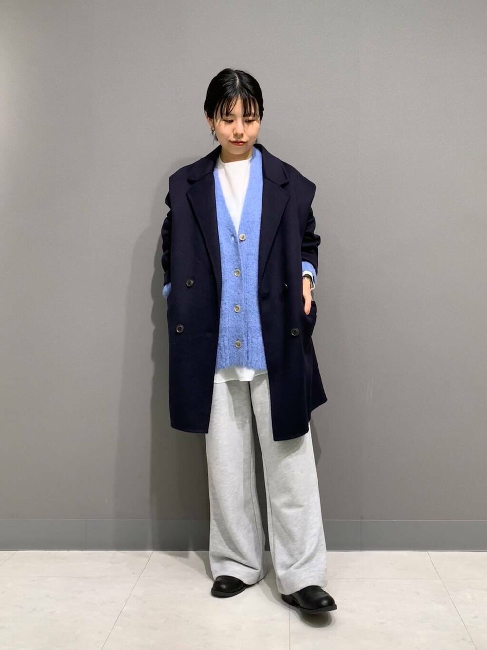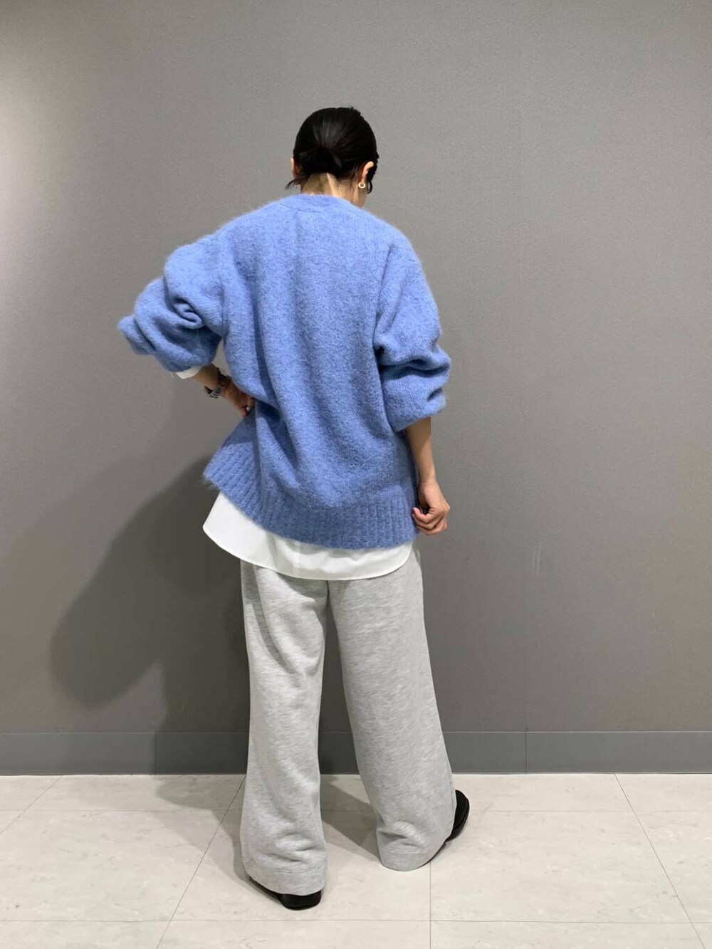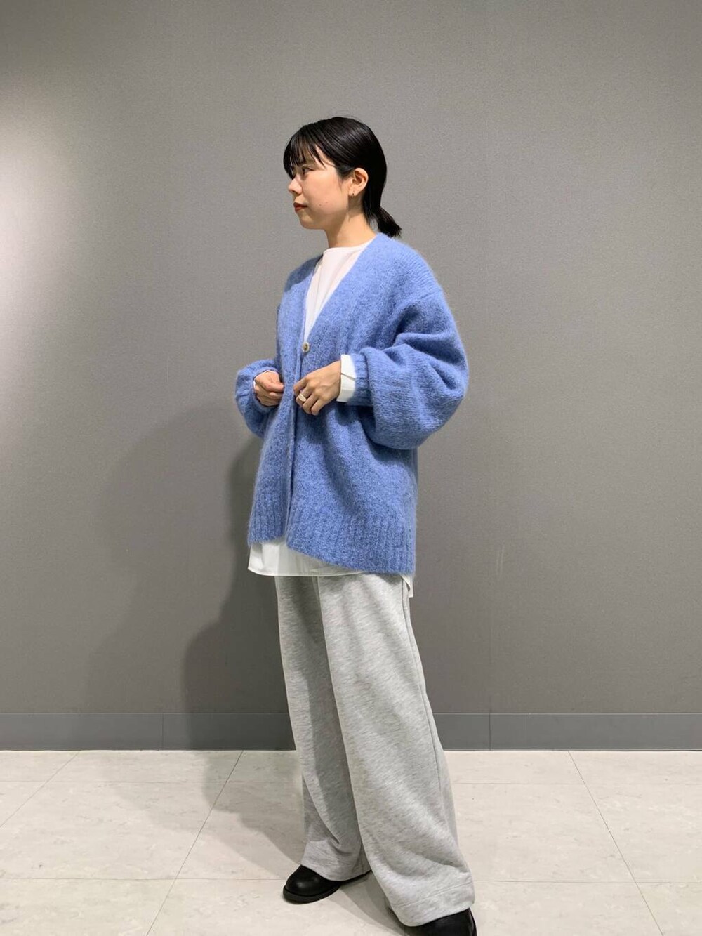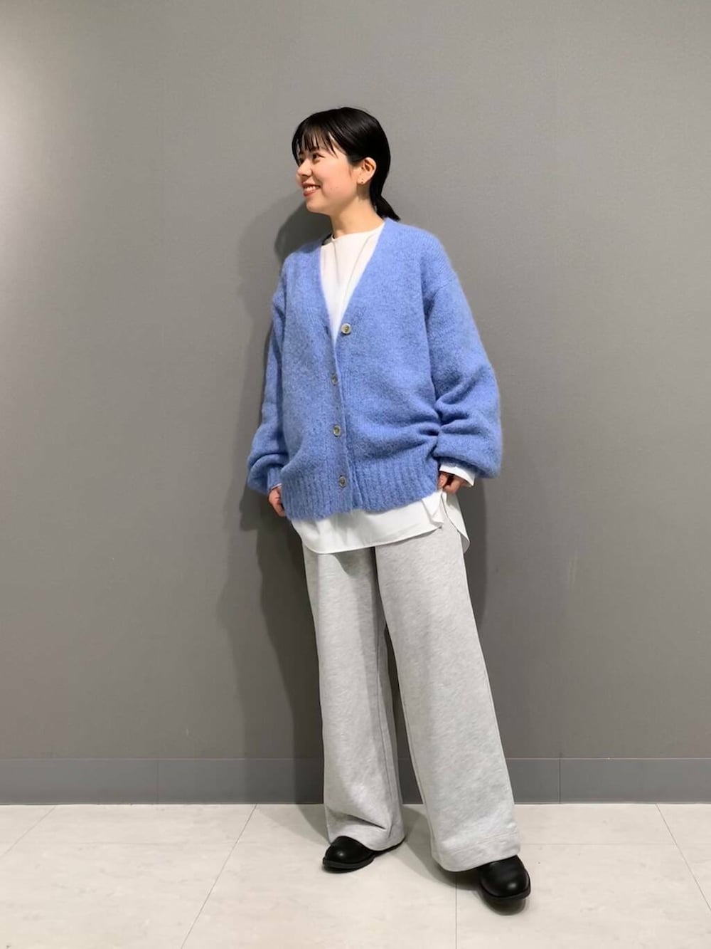 スウェットとカーディガンでリラックスムードな組み合わせですが、