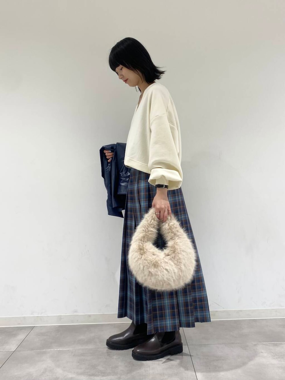 秋冬らしく、チェック柄スカートとレザーの組み合わせでスタイリングしてみました!