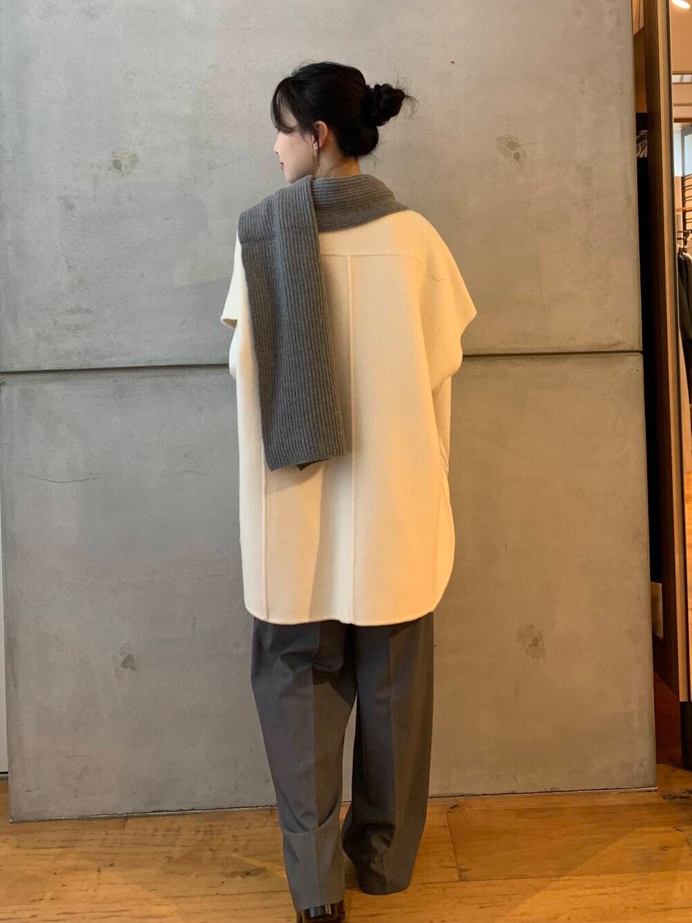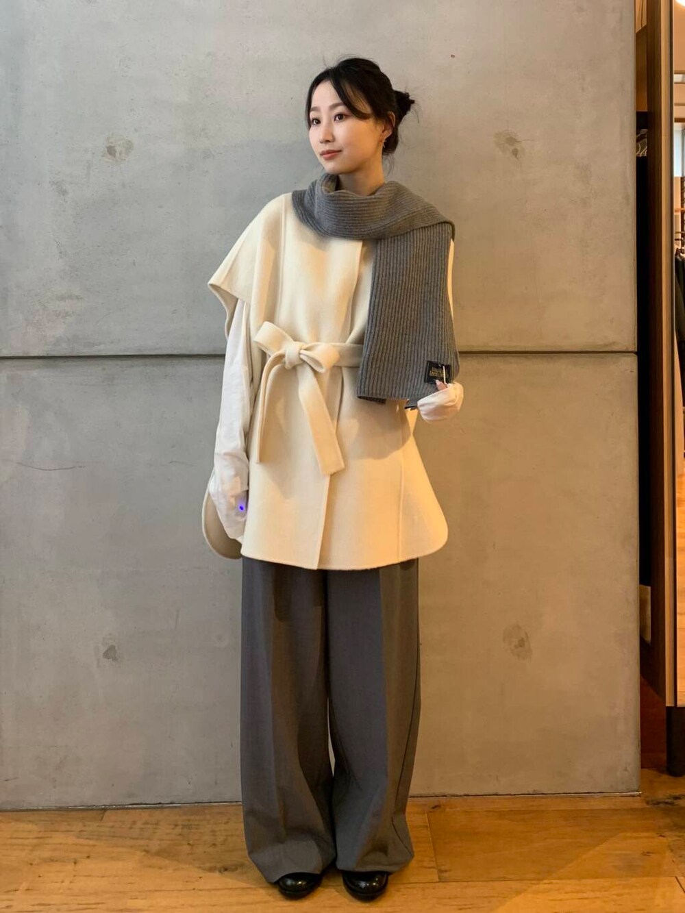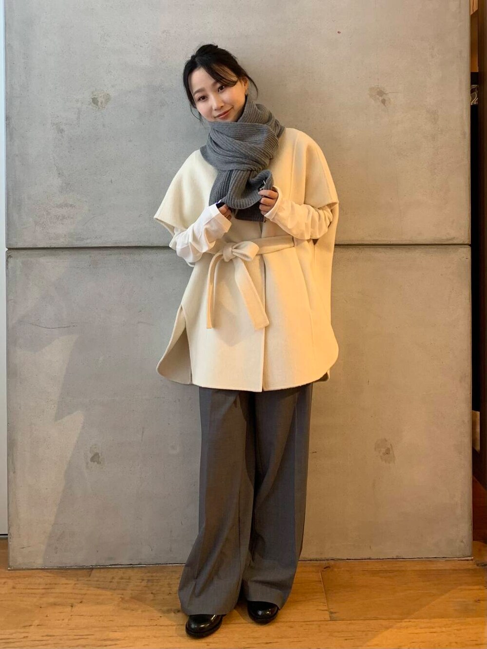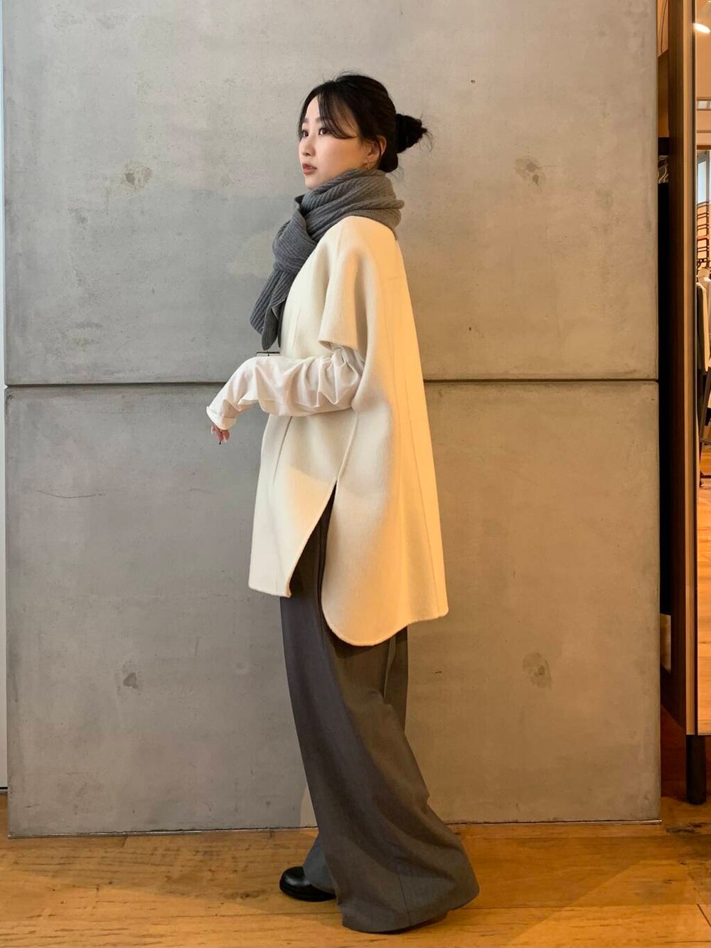 このコートを身に付けるだけで大人っぽく仕上げてくれます!写真のようにパンツスタイルでも合いますが、細めのスカートとの相性もいいです!