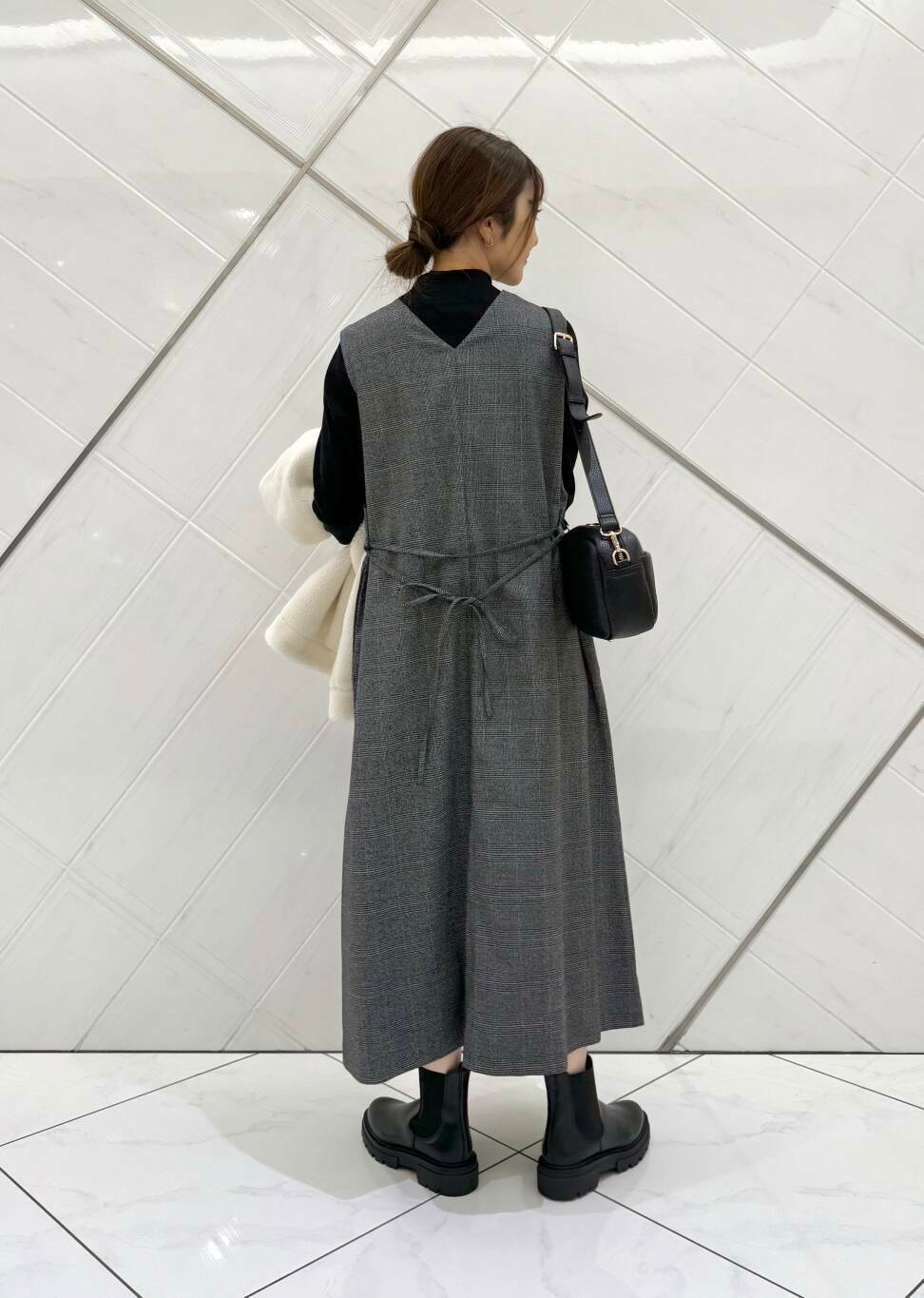 ジャンパースカートは付属のリボンをお好みで前でも後ろでも結んでお好みのシルエットに変えられます。