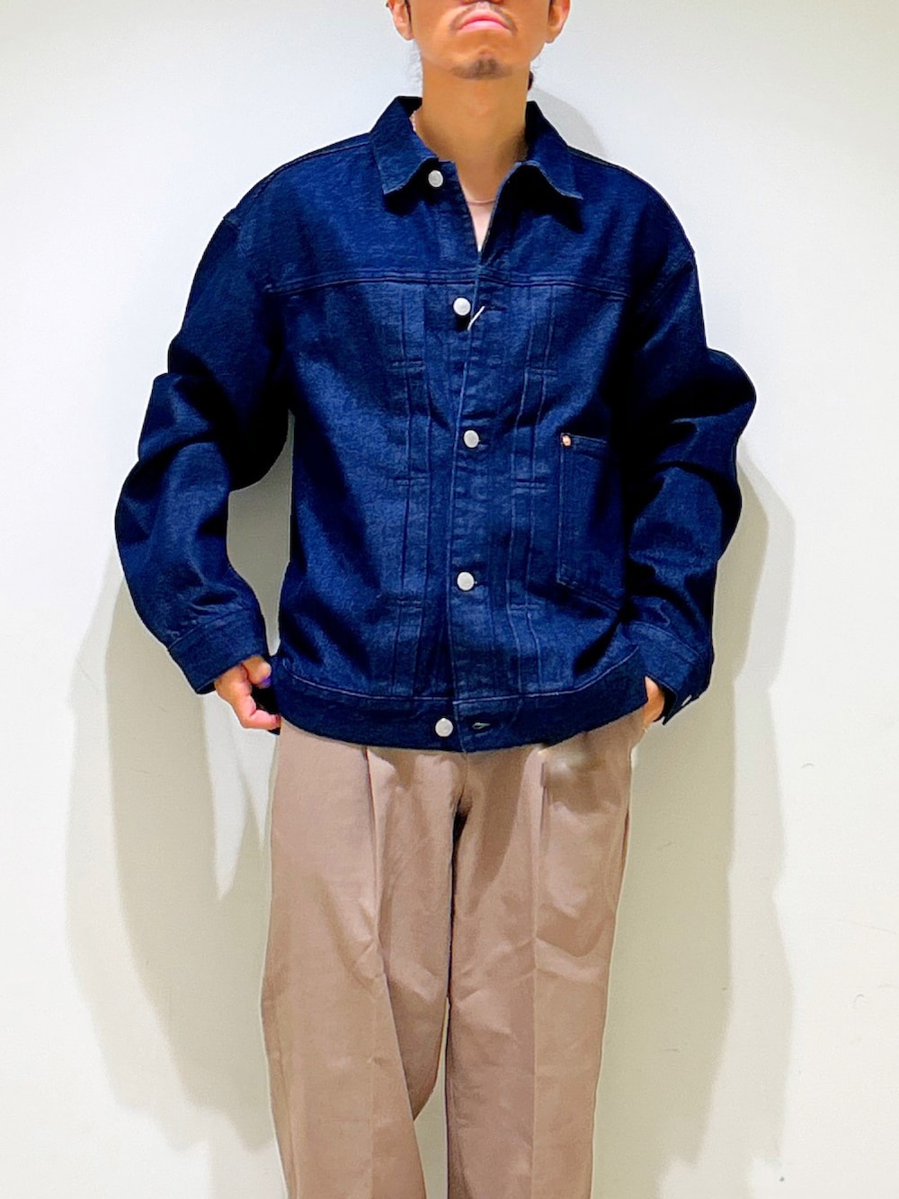 旬にとらわれすぎない定番、スタンダードなサイズ感とデザインが飽きの来ない日々のスタイリングに寄り添ってくれる一着が完成。