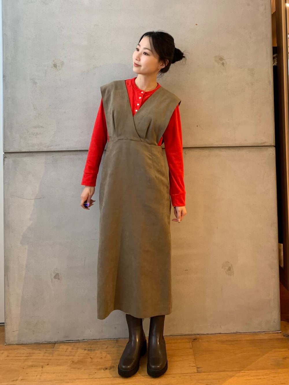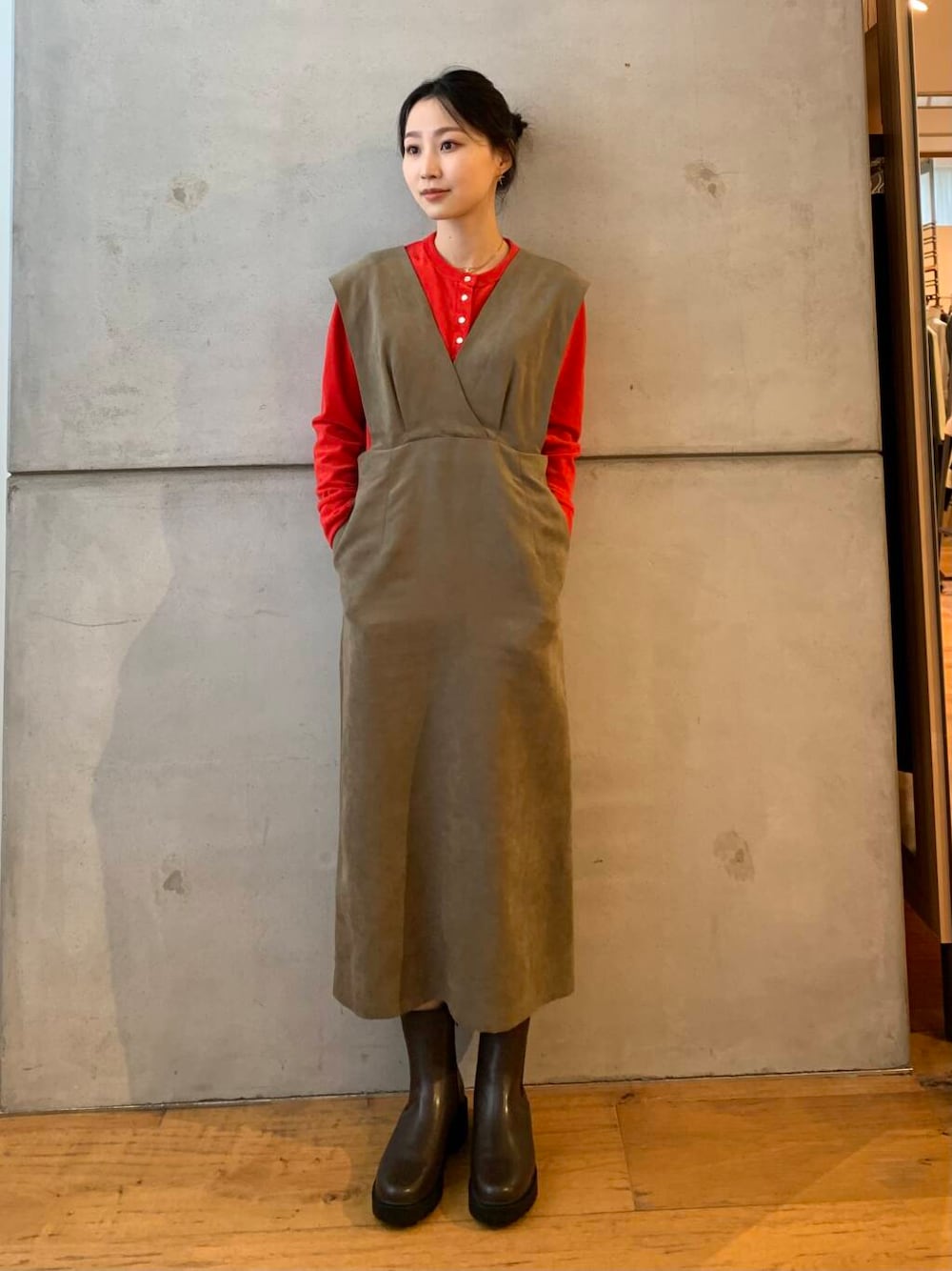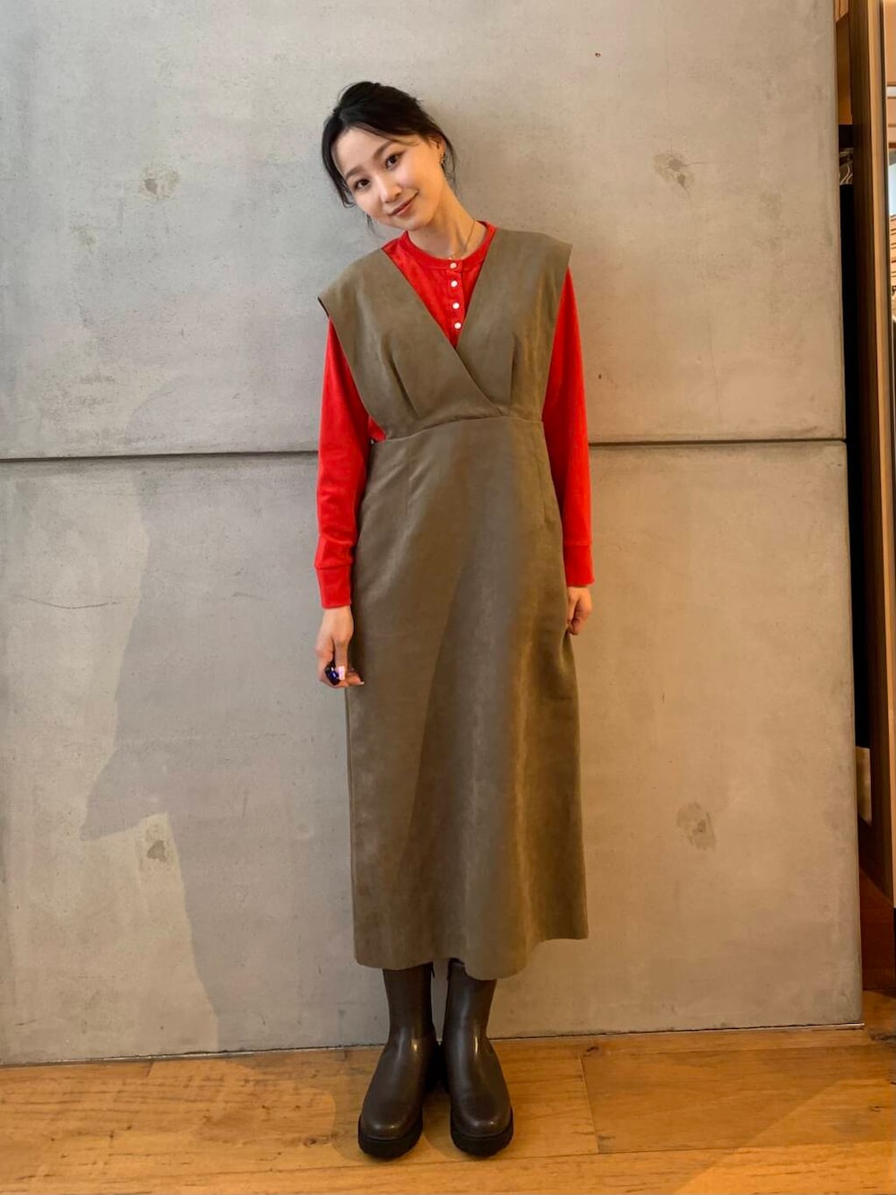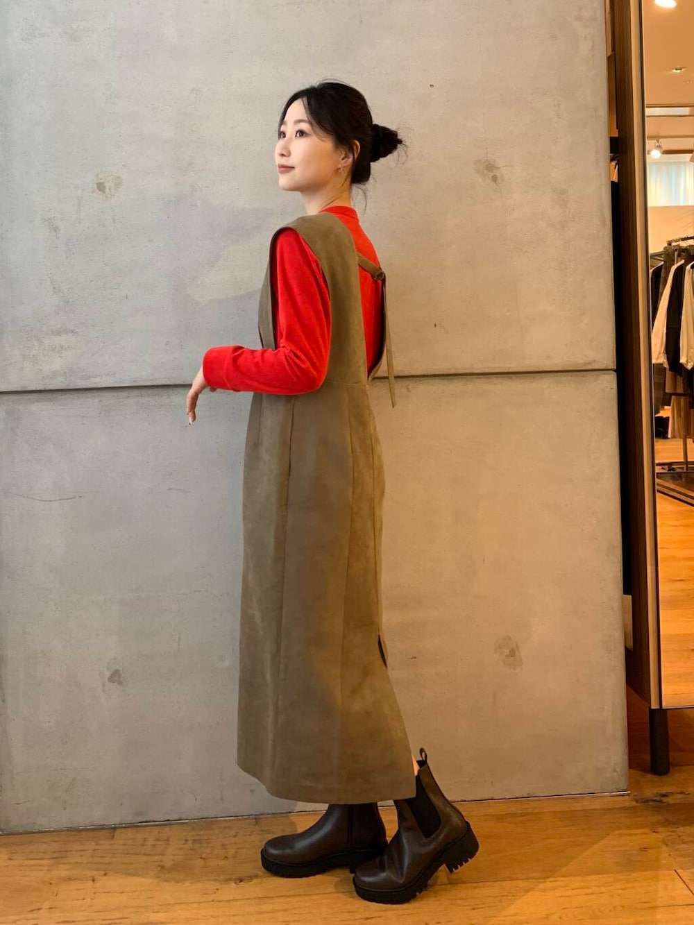 ワンピースも中のカーディガンも素材が秋冬っぽくてとてもかわいいです!!