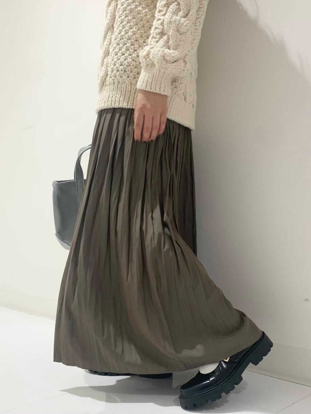 ロングスカートが好きな身長165㎝の私には少し短めに感じましたので今回のコーディネートでは腰より少し下で履いています。