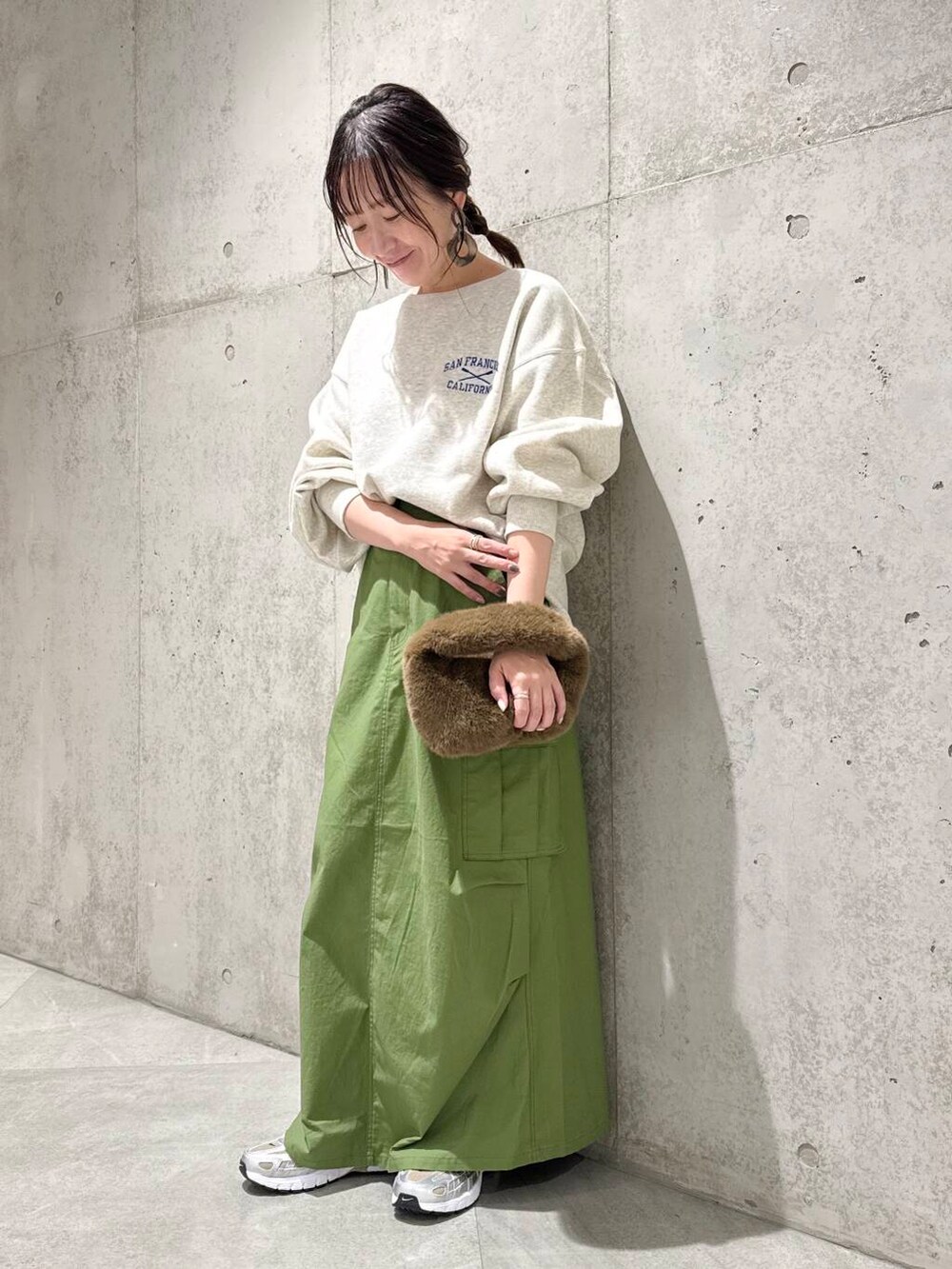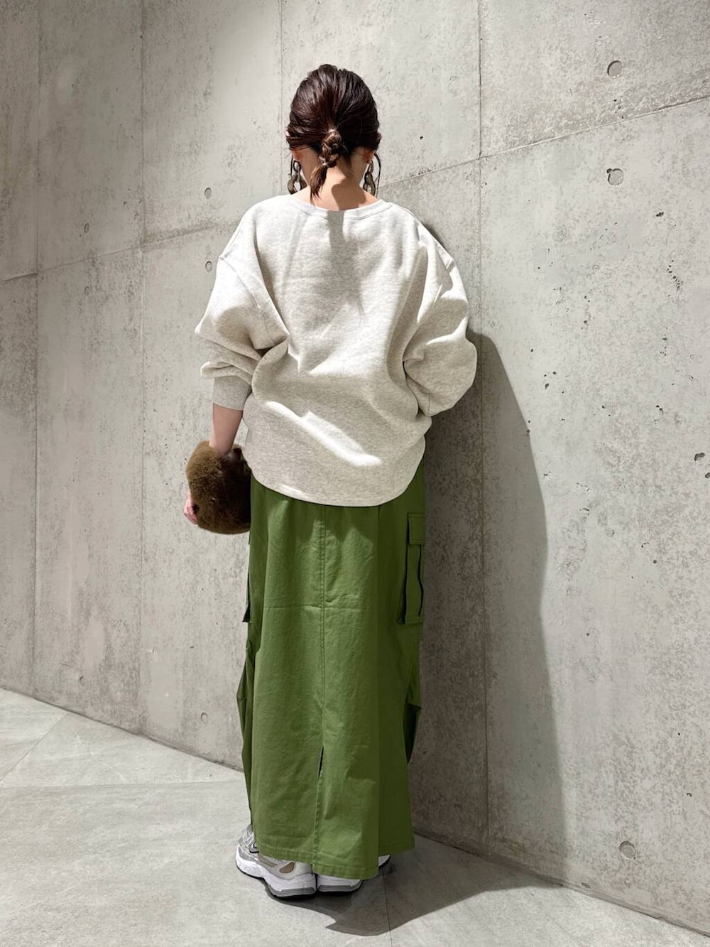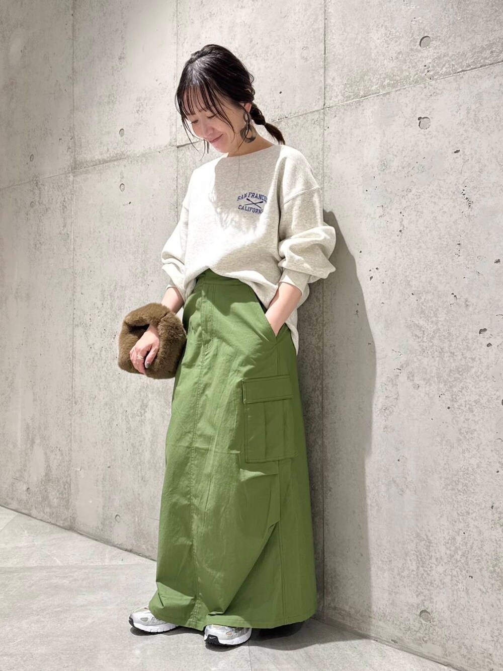 今回は、カーゴスカートを合わせて、大人カジュアルコーディネートです。