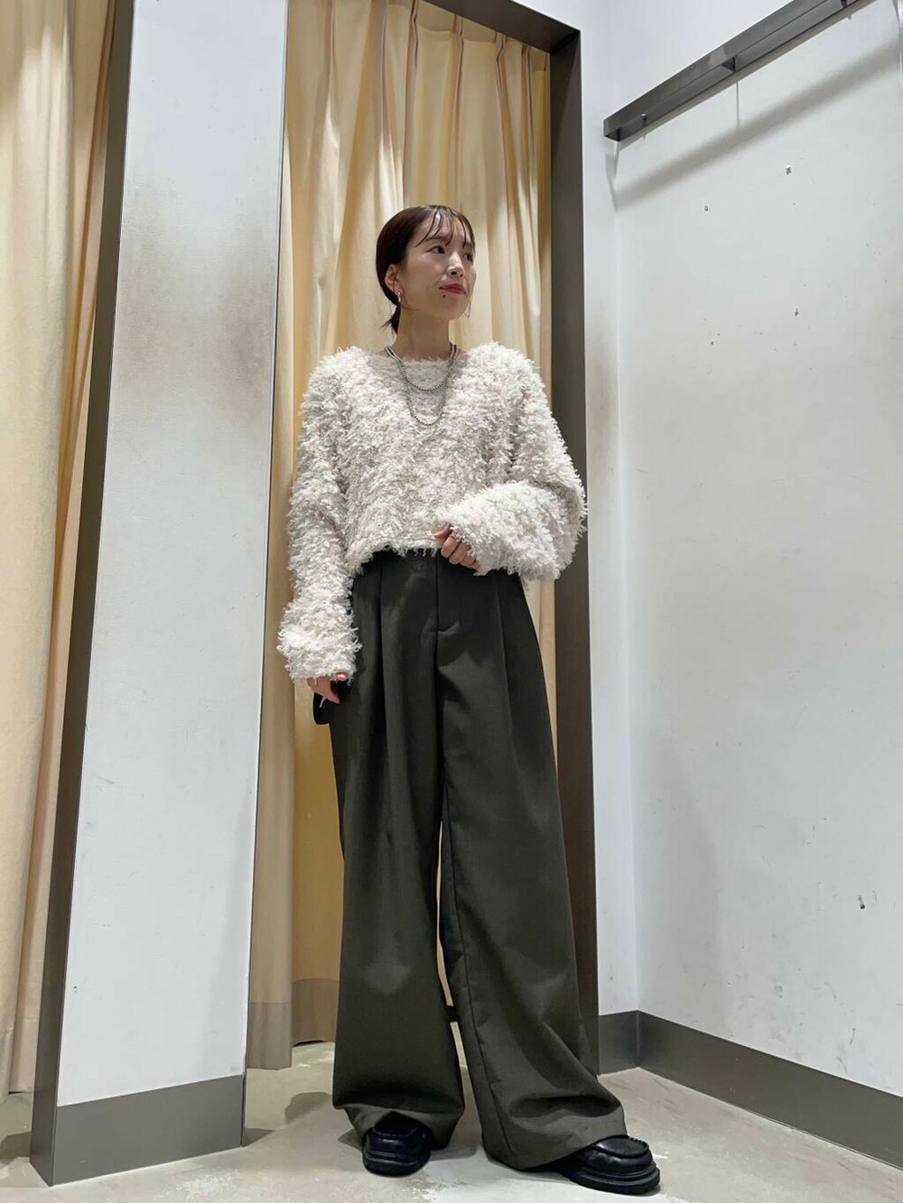着丈がすっきりと着れるので、低身長の方はワイドパンツでもバランスがとりやすいです!