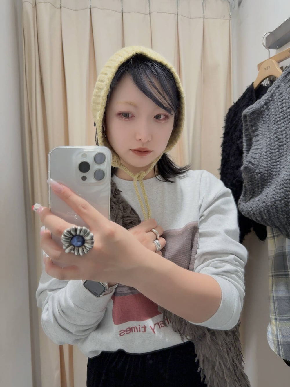 桃の表面のような肌触りで、着心地本当よいです〜〜スウェットまで厚手じゃないのでアウターの中にも重ねやすいですよ💮