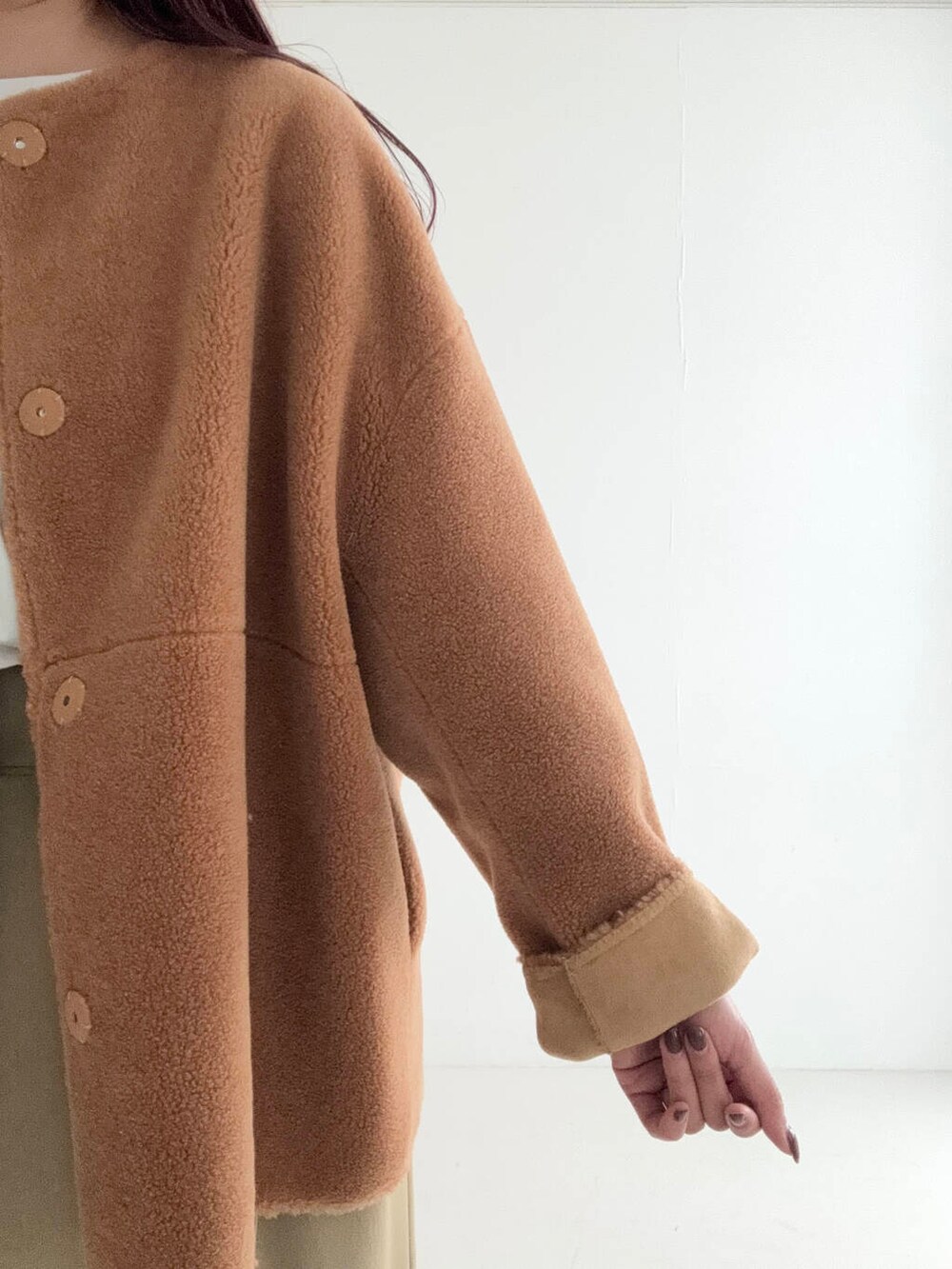 大きめのフロントボタン仕様も着脱がしやすく、冬でも温かくお召し頂ける優秀アウターです。