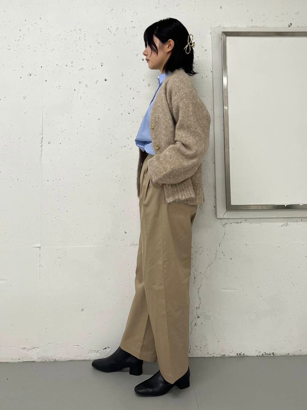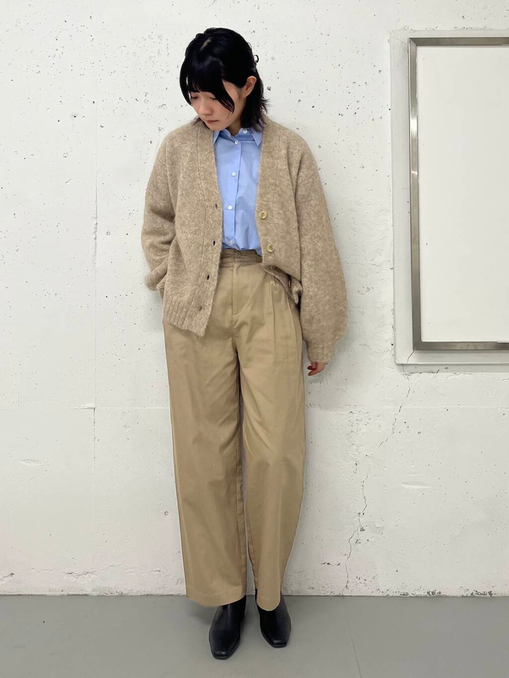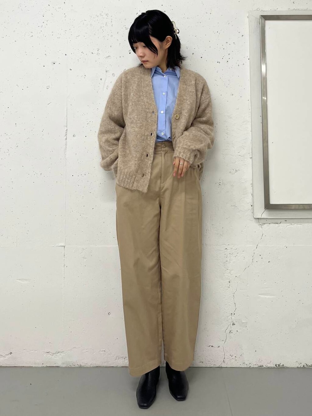 ベージュの色味を合わせながらも淡い色になりすぎないようにコーデを組んでみました!