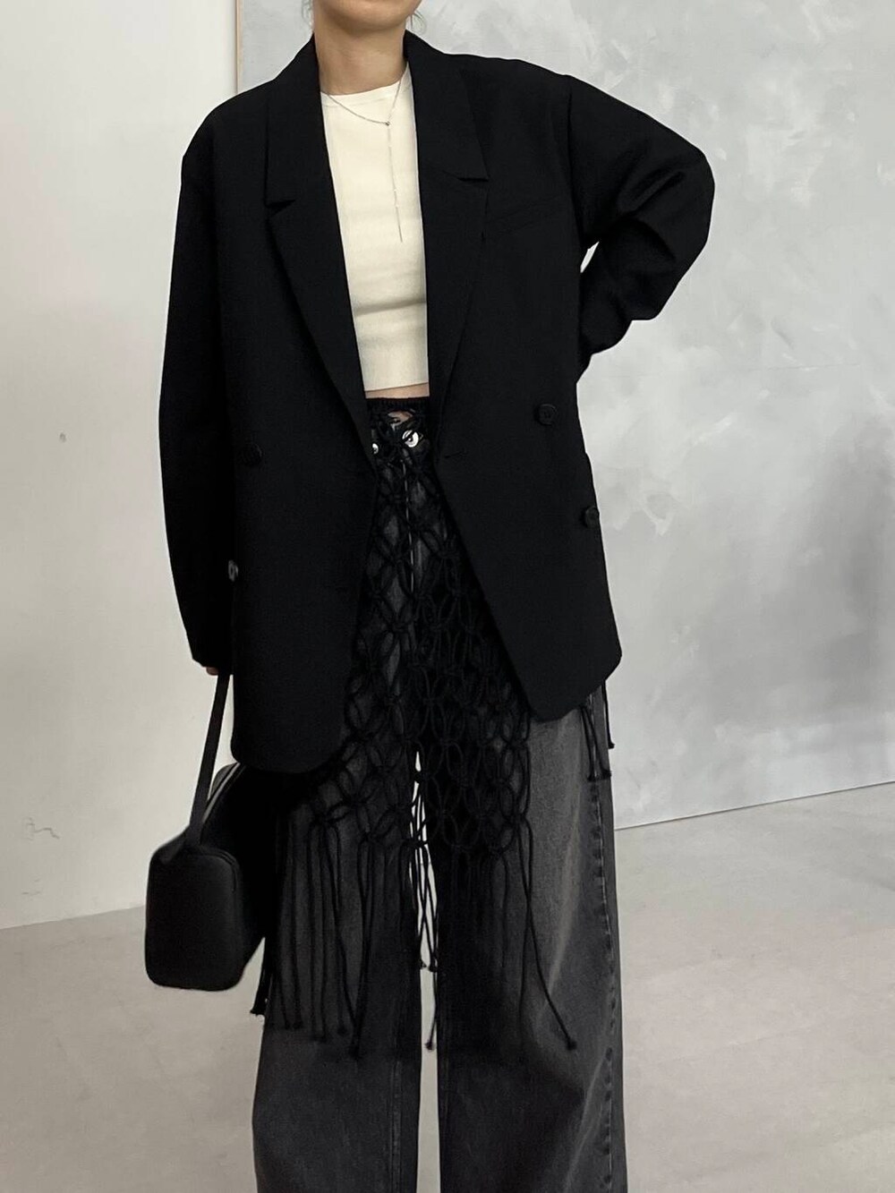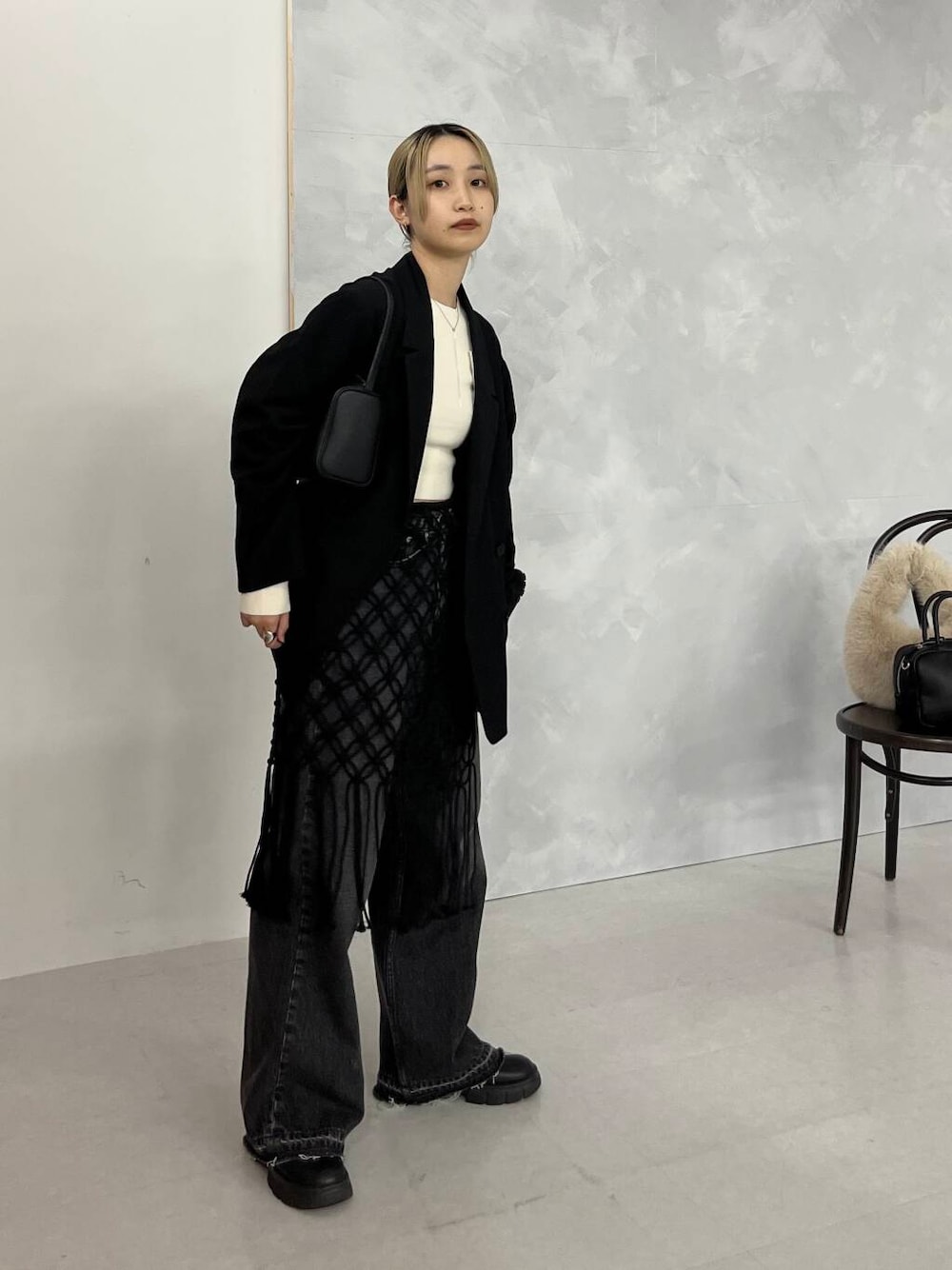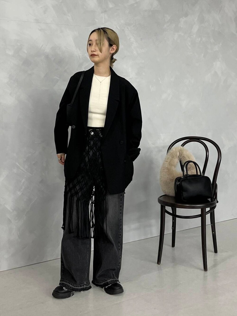 ジャケット×デニムスタイルに合わせて、女性らしさのあるカジュアルコーデに🤲