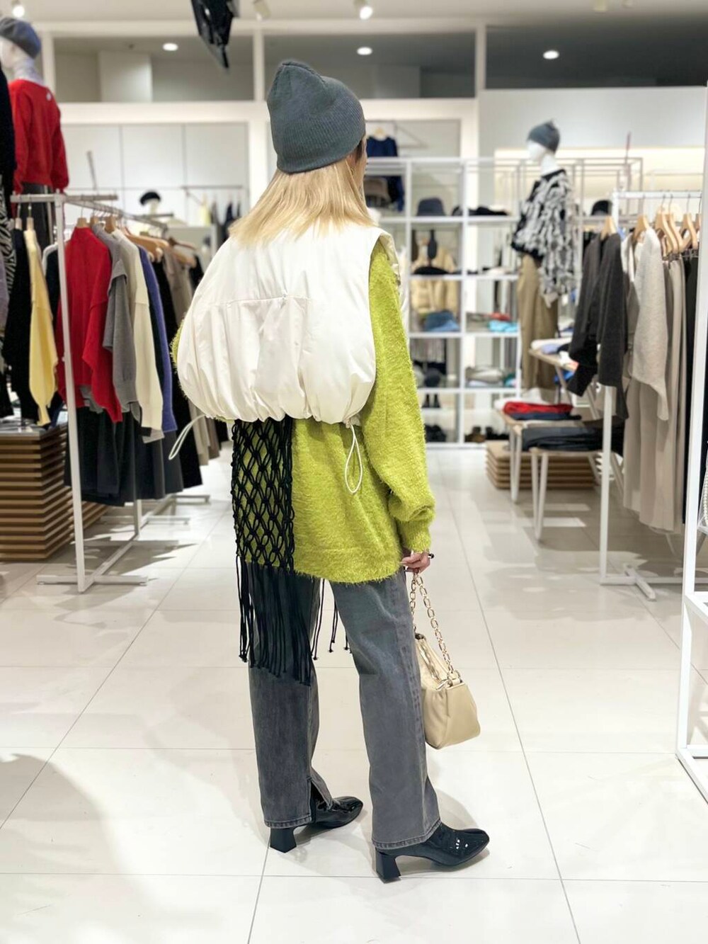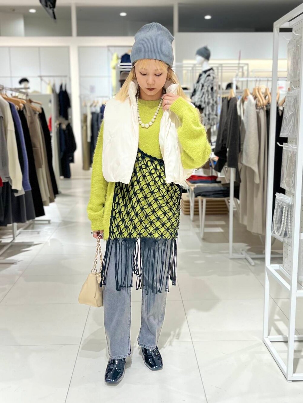 パフベストの白はインナーにカラーアイテム差し込んでも映えます💓!