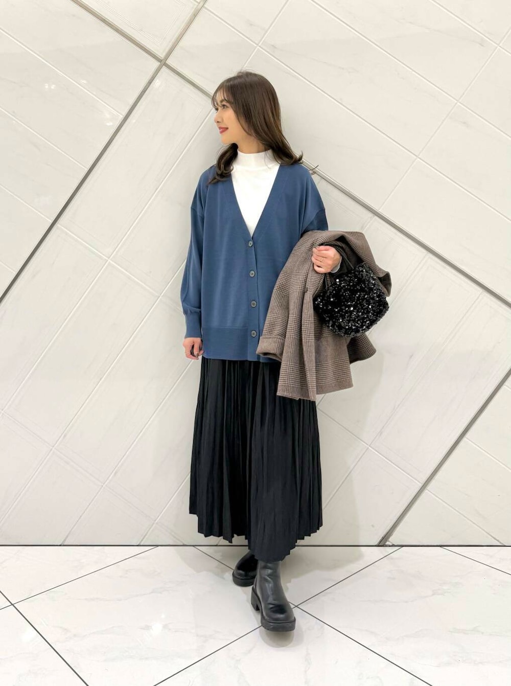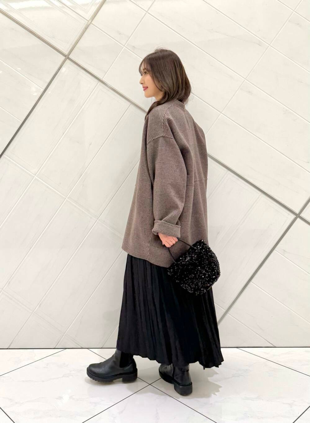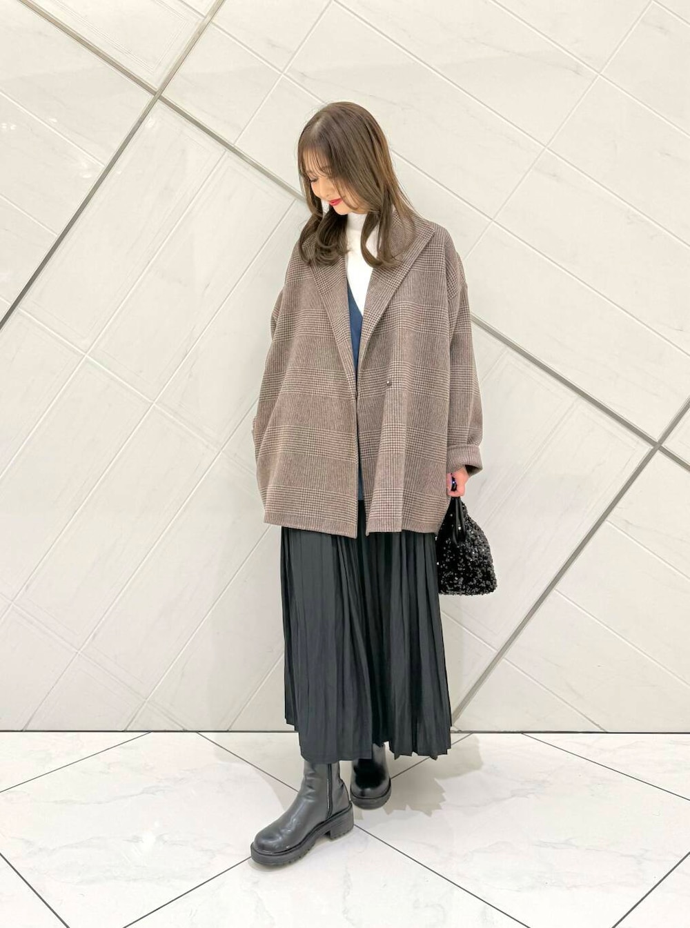 アウターはウールの1枚仕立てなので軽くて、ゆったりとしたサイズ感なのでさらっと羽織りやすいです。
