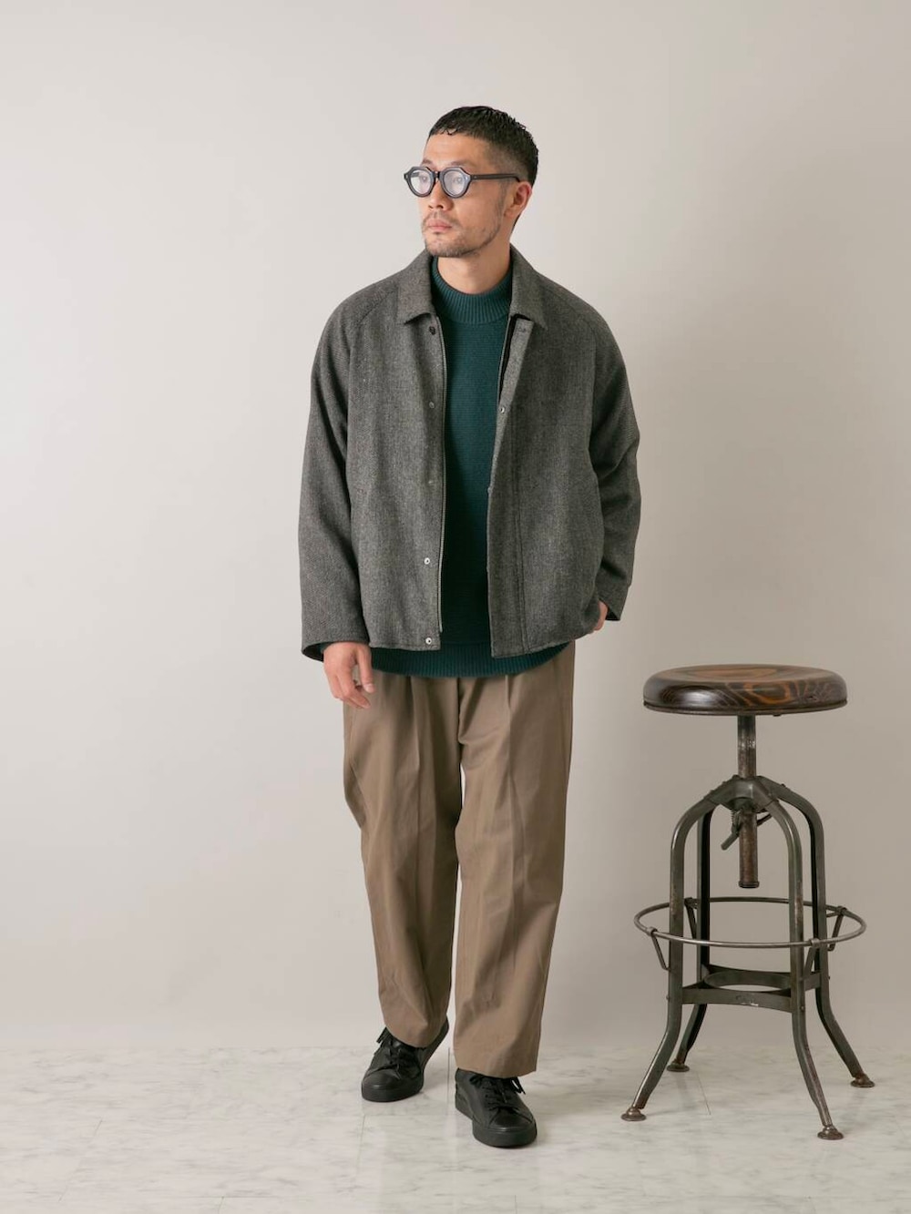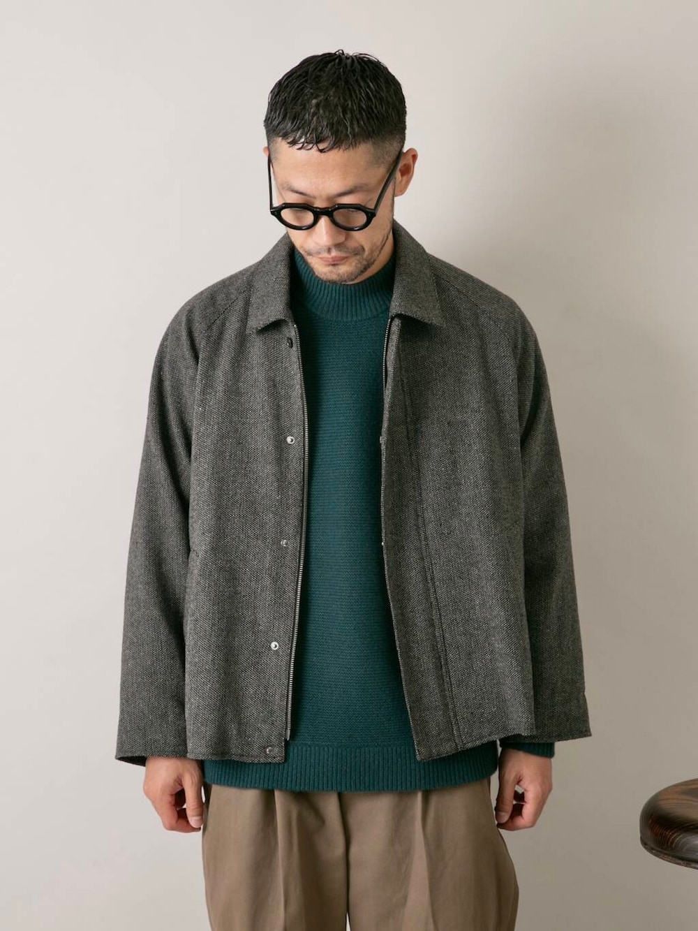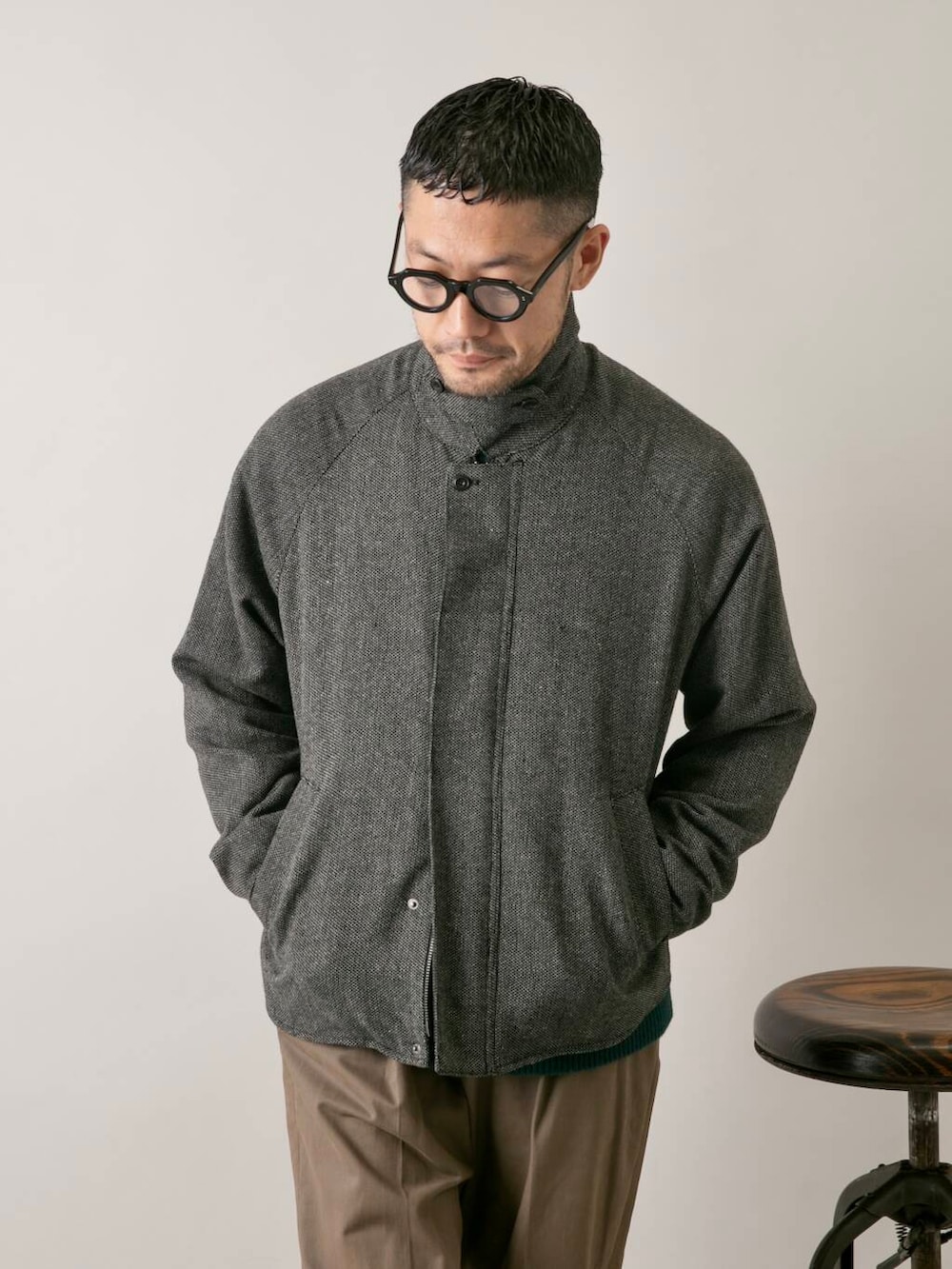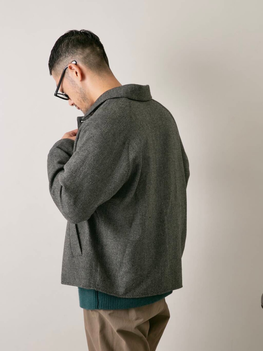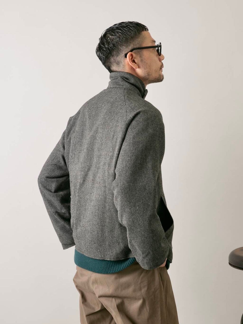 しっかり中に着込めるサイズ感にスタンドカラー仕様、締めても開けても様になるニクいやつ。