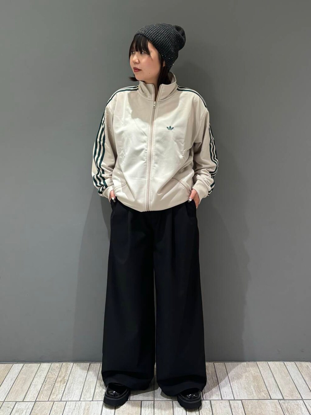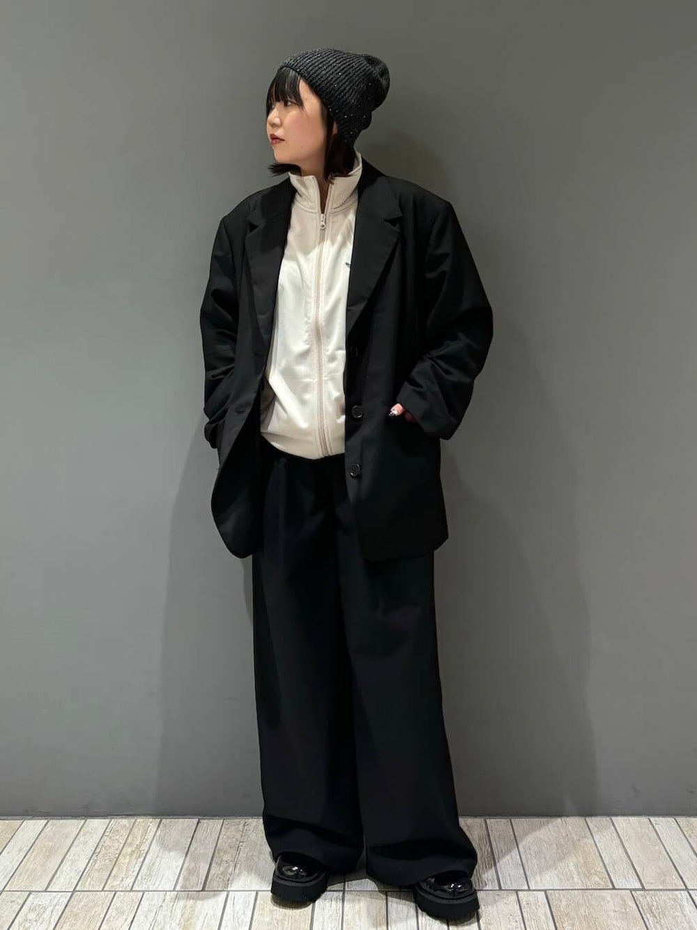 今回は、モードな雰囲気のセットアップ風着こなしにトラックジャケットをプラスしてカジュアルっぽくしてみました!