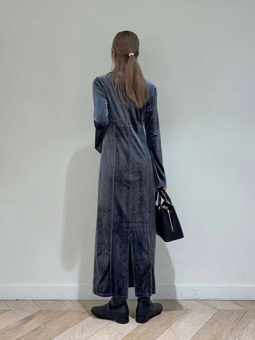 ベロアのワンピースはどうしても重心が重くなるような印象がありますが、こちらはウエストマーク位置が高く、内側にかけてくびれのような切り替えになっているのでスタイルアップ効果もばっちりです♡