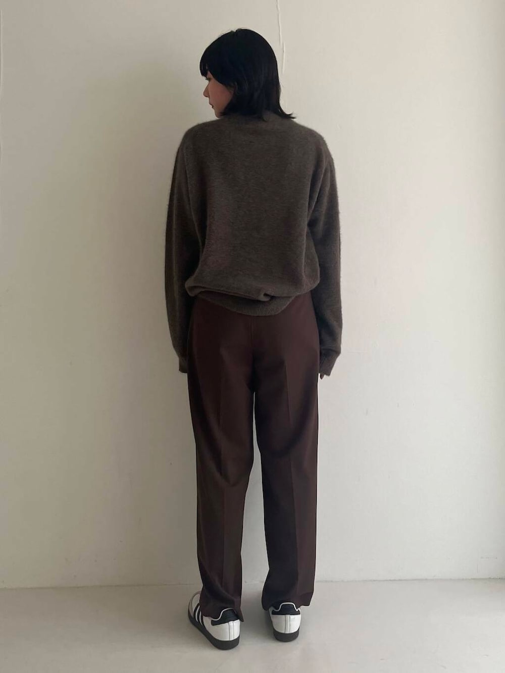 メンズのニットを着用しているのですが、ゆったりとしている分、ボトムスに履いているストレッチギャバスラックスはツータック入っているので