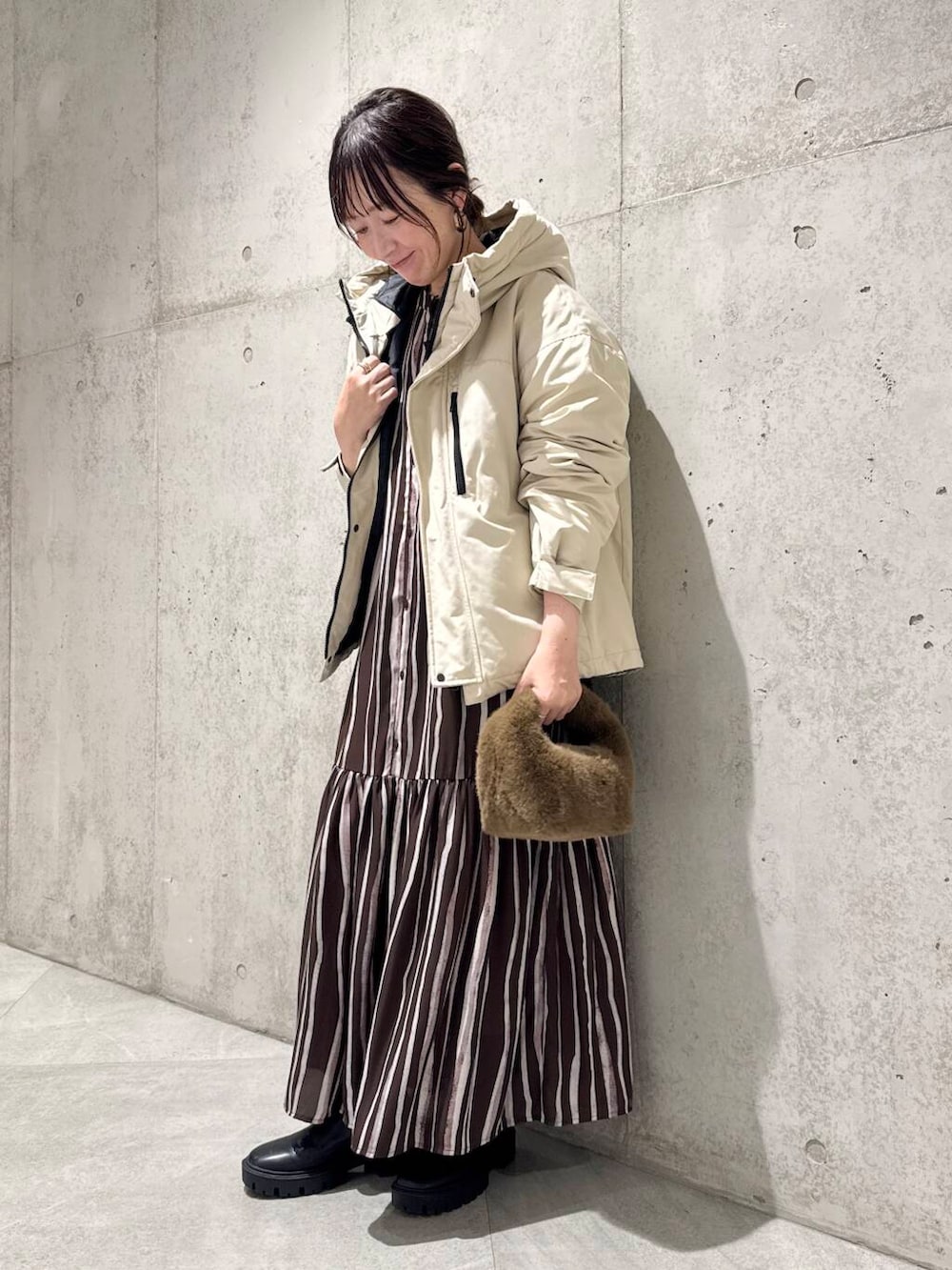 今回は、柄のワンピースをアクセントにした、大人カジュアルコーディネートです。